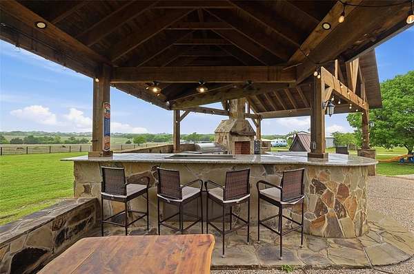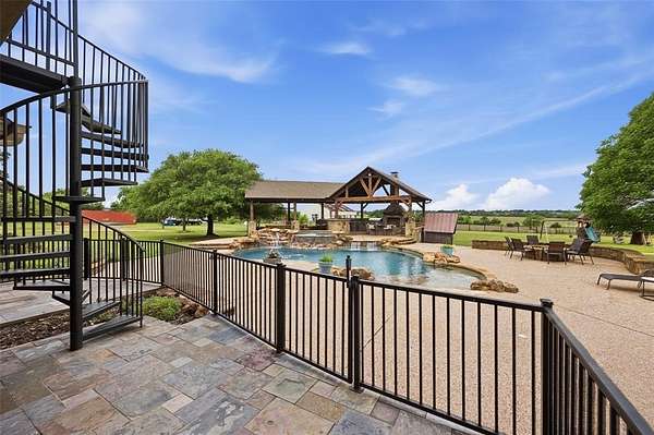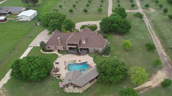 REFINED RANCH LIVING ~Set on almost 33 acres of fenced and cross fenced land, this exceptional estate offers the perfect blend of refined living and wide open Texas Beauty .Designed with both comfort and functionality in mind ,the 4,183 sq ft home features 4 spacious bedrooms, 4 full bathrooms ,a dedicated media room, and an upstairs game room that opens to a deck with sweeping views for miles. Outdoors the amenities truly shine. A sparkling swimming pool, hot tub, and a fully equipped outdoor kitchen create an ideal setting for entertaining or relaxing under the stars. The stock pond along with a floating dock add a peaceful and functional aspect to the landscape. Equestrian and agricultural enthusiasts will appreciate the barn, multiple livestock enclosures for goats or sheep, and the beginnings of a custom barn, barndominium, venue or stables ready for your vision to come to life! A circular drive and expansive front drive welcome you home to this luxurious property. Whether you're seeking a private retreat, working ranch ,or luxurious country estate, this one of a kind property delivers on every level! Welcome Home~