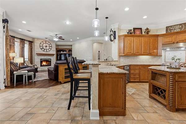 - Built-In Features, Cable TV Available, Decorative Lighting, Double Vanity, Eat-In Kitchen, Granite Counters, Kitchen Island, Natural Woodwork, Open Floorplan, Pantry, Vaulted Ceiling(s), Walk-In Closet(s)