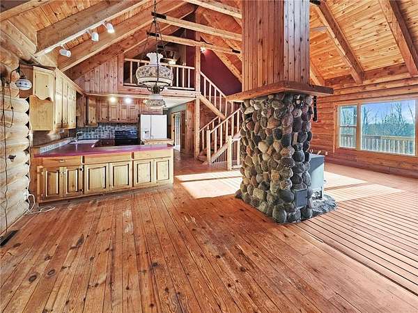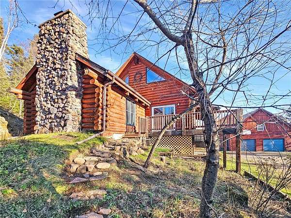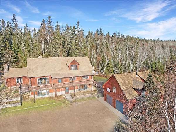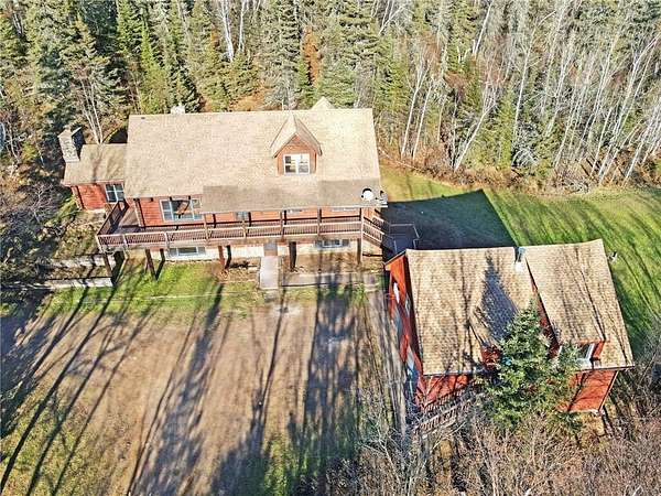 Located just off the shore of Lake Superior on Minnesota's renowned North Shore, this 5-bedroom, 4-bath log home sits on 20 acres of fully wooded privacy with no neighbors in sight and offers multiple main-floor living spaces, vaulted ceilings, natural woodwork, timber construction, and two wood-burning fireplaces, plus a walkout lower level with additional living space. A major bonus is the 840 sq ft seasonal guest quarters above the detached 30x28 garage, featuring an open layout, its own wood-burning fireplace, and a 3/4 bath--ideal for guests or studio use. The property also includes a sauna, covered porch, large deck areas, and level forested ground ideal for trails, recreation, and year-round outdoor use, all just minutes from Silver Bay, state parks, trail systems, and the outdoor amenities that define the North Shore.