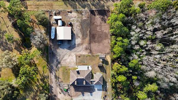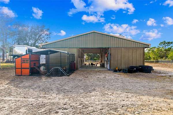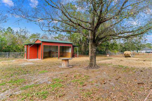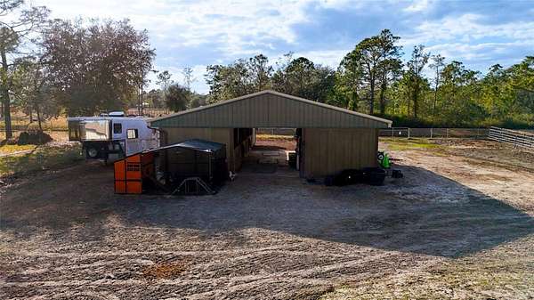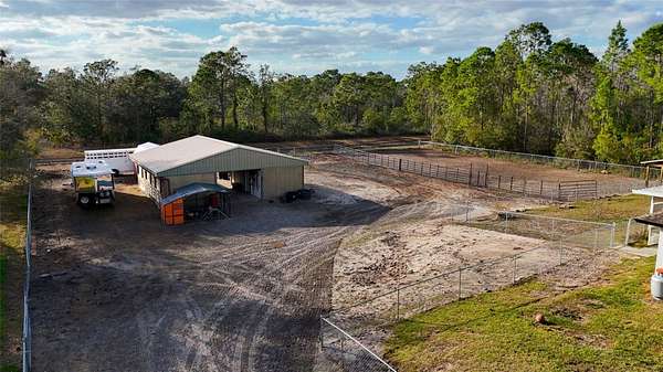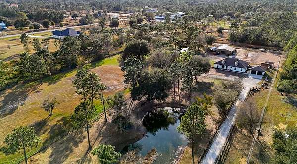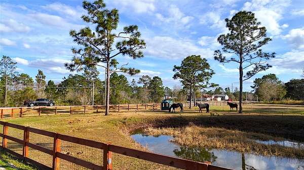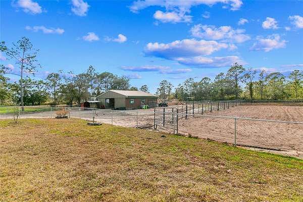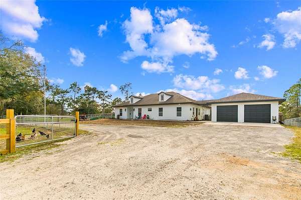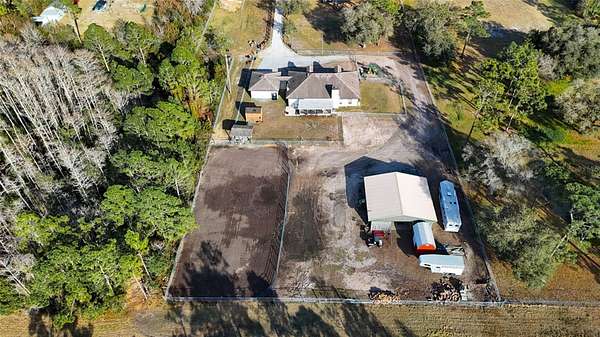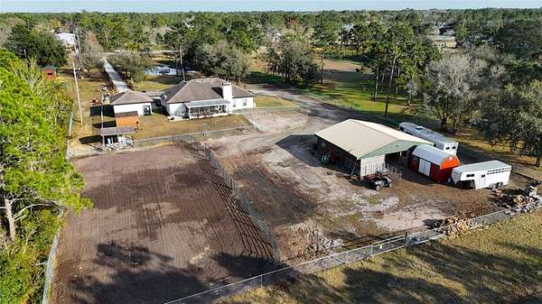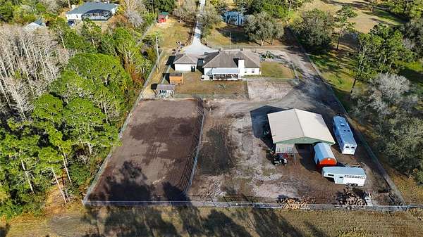 Welcome to your private equestrian retreat. This spacious 4-bedroom, 2-full bath home offers a flexible split floor plan with the 4th room that easily functions as a bonus room. Vaulted ceilings enhance the open feel of the home, while the cozy gas fireplace creates the perfect focal point for comfortable living. Chef's kitchen is designed for both everyday and living. Fully functioning property currently set up for all of your farm animals. Enjoy a 60x120 riding area, a three-stall barn complete with tack and feed rooms, an additional shed with storage. With access to mile of riding trails directly from the property, this is truly a horse lover's dream. Relax by your private pond with dock. A detached garage provides additional storage and workspace options. Whether you're looking for a working farm, equestrian property, this unique property offers endless possibilities while still being conveniently located in Orlando.