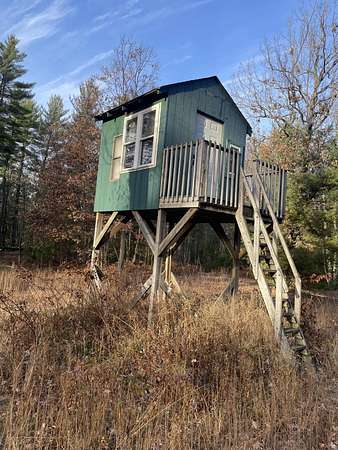 Here is a sweet off grid set up that is sure to please! 20 acres of mixed woods with state land on 3 sides and across the street. Offers a large pond in the back accessed via private trail that also leads to food plot sites and a gem of a tower blind! Cabin is not huge but has what you need. Open kitchen and living area on the main level with a hideaway bed and full bath. Loft above is approximately 200 SQ FT and is used as a bedroom. Cabin heated with a LP wall heater and ran with a generator that has its own building to cut down on noise. Both the roof and the septic are less than 10 years old. Location is a county maintained road with multiple lake access's and a river access nearby, with riding trails available as well. This is a great time to get a jump on this place before spring, call today!