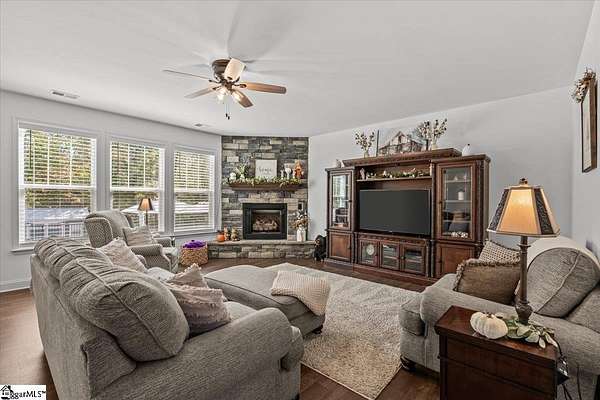 Lovely well maintained 4 bedroom, 2.5 bath home with amazing space! Call Listing Agent for showing. Advanced notice is preferred. Beautifully designed and well kept. Spacious kitchen with granite countertops and stainless appliances. Breakfast bar and living space is open. Formal dining room. Master and Study on the main floor. Upstairs hosts 3 more bedrooms along with office space and a large bonus room. So many options for all the space. Just off the downstairs living room is a covered deck which overlooks the pool area. Large deck area steps down to the patio which accommodates a fire pit, several patio table and chair sets, and lots of room for lounging chairs. Easy step down into the lovely saltwater pool. Privacy galore with the wooded back yard. This home is the entertainers dream.