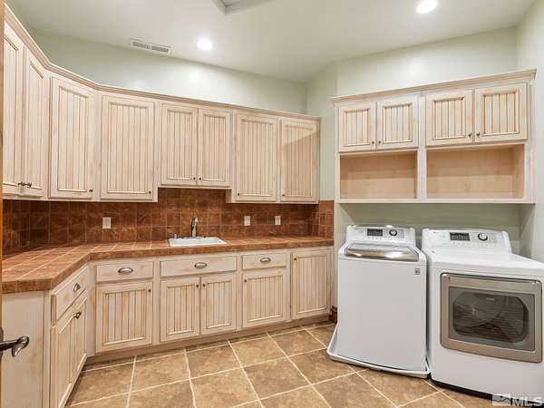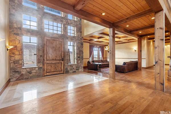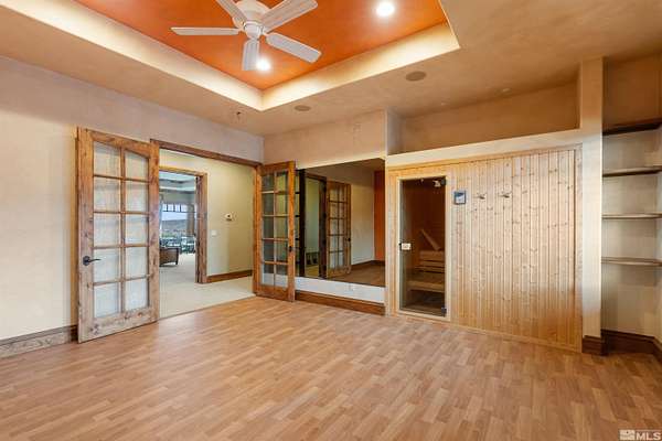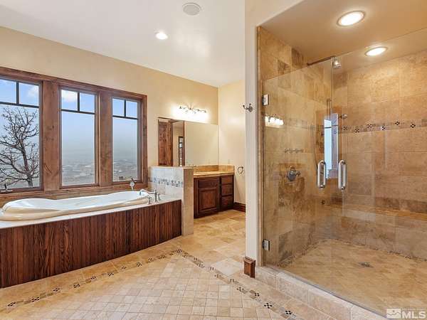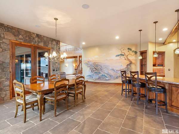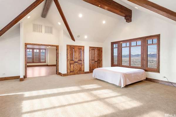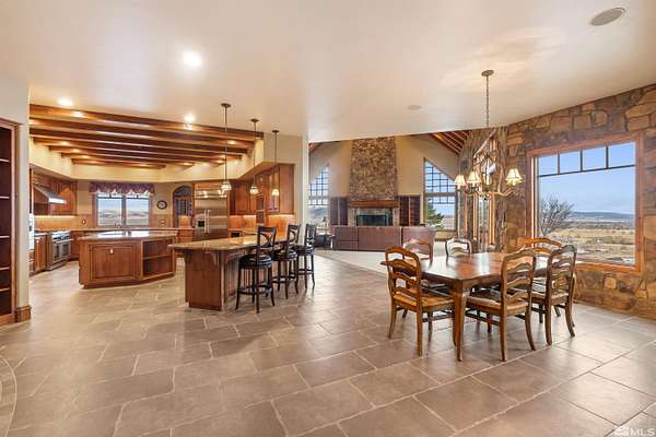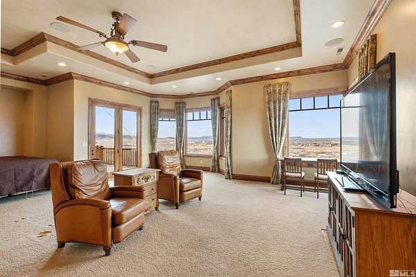 Discover Elegance on the Hillside: A Luxurious Sanctuary in Fernley Step into a world of refined luxury with this exquisite hillside estate, commanding breathtaking views of Fernley to the east and expansive open land to the west. Designed with an eye for detail and an emphasis on quality, this property features spacious bedrooms alongside dedicated rooms for meetings, sewing, office, entertaining and fitness, complete with a sauna, ensuring every aspect of your home life is catered to. Entertain in style in the stunning kitchen equipped with all the modern luxuries you can imagine, including granite slab countertops, a commercial-quality gas Thermador range with pot filler, dual dishwashers, trash compactor, and a center island, all set against the backdrop of gorgeous alder cabinetry. The expansive great room dazzles with its massive fireplace, wood-beamed ceilings, and an elegant wet bar, complemented by a formal living room and dining room. Experience ultimate comfort in the master suite, which features a large walk-in closet/dressing room with a separate shoe/hat closet, and an en-suite bathroom with a walk-in marble shower, deep tub, and dual vanities. Start your mornings in the suite's morning room, perfect for enjoying coffee and pastries without ever leaving the comfort of your bedroom. The large first-floor office provides an ideal space to run a private home business, equipped with custom-built desks, cabinets, a full bath, and a walk-in bank-quality vault room, which can also serve as a second master bedroom. This home has Starlink internet and Wi-Fi capable thermostats. No detail has been overlooked in crafting this 18+ acre estate, from the exquisite finish work to the integrated home system complete with an alarm. The property is fully fenced with tan vinyl, and utilities are pre-stubbed below the hill for potential barn or workshop additions. With a sprawling 5-car garage totaling 2252 sq. ft. and a location just minutes from town, this home is not just a residence but a statement of lifestyle. Perfect for horse owners and those seeking a private, luxurious living experience. Buyer & Buyers Agent to verify all information.
