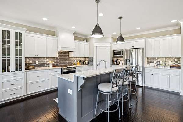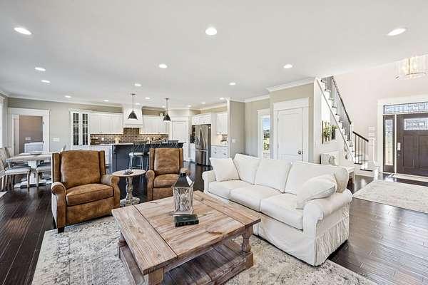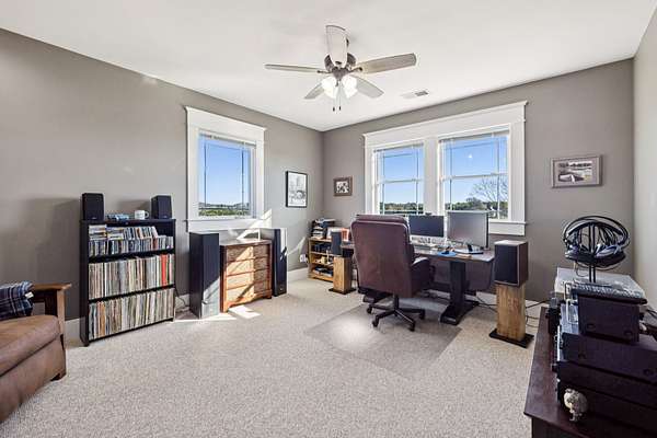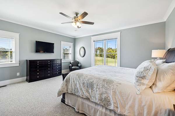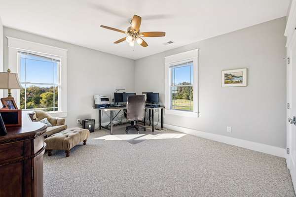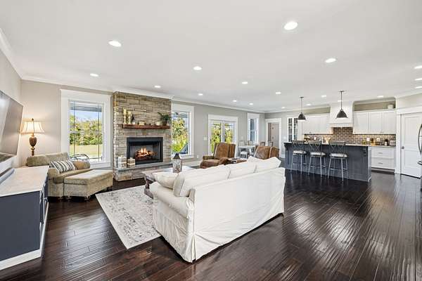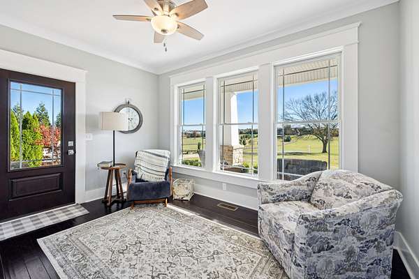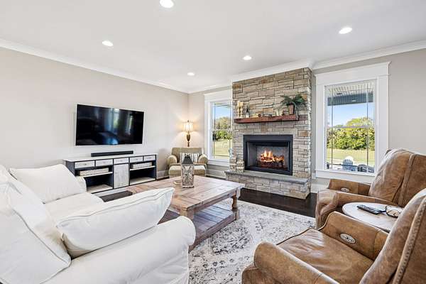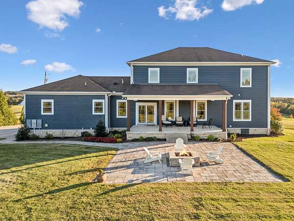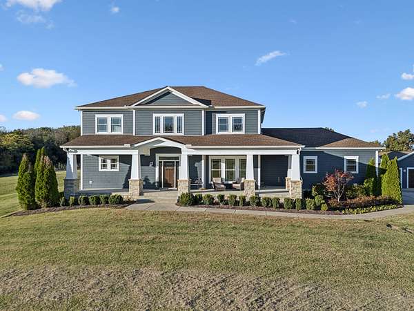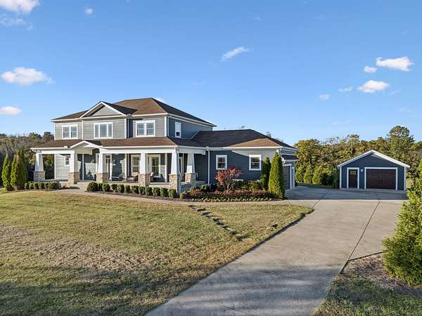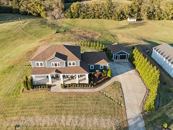This custom built, Craftsman-style home has a thoughtful design and is nestled on 9.2 peaceful acres surrounded by rolling hills and countryside views. Inside, an open floor plan welcomes you into a spacious living room featuring a gas fireplace and large windows that fill the space with natural light. The designer kitchen is complete with a massive island, custom cabinetry, gas range, double oven, and a walk-in pantry. A sunroom off the main living space has built-in bookcases and a wall of windows to take in the beautiful views. The primary suite offers a relaxing retreat with separate his-and-hers closets, dual vanities, and a spa-like bath featuring a soaking tub and separate shower. The upstairs features 3 bedrooms and a bonus room built for fun and relaxation, featuring surround sound and a wet bar--ideal for movie nights or game day gatherings. There is a 2 car attached garage as well as a 1 car detached garage, providing ample storage and workspace. Enjoy morning coffee on the rocking-chair front porch or unwind in the evening on the covered back patio overlooking a custom firepit area--perfect for entertaining or quiet nights under the stars. The property has an orchard of 43 mature fruit trees, including pears, apples, and peaches. This home is built for efficiency with a tankless water heater, whole-home water softener, encapsulated and conditioned crawl space, and spray foam insulation for energy savings year-round. Additional highlights include security cameras, smart thermostat and garage controls, ensuring convenience and peace of mind. The location is hard to beat, enjoy the rural views and quiet setting but located only 5-10 minutes to restaurants, grocery stores, and schools and less than 25 min to the Nashville International Airport - BNA. This is more than a home--it's a private retreat.
