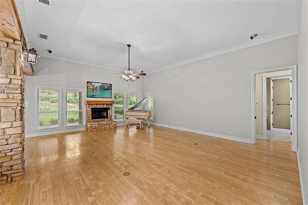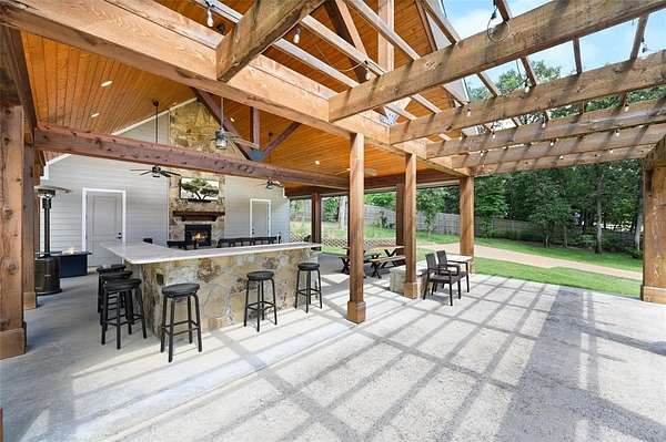 Move in ready and perfect for relaxing at the pool! This one of a kind, beautiful custom home is located in one of the most prestigious area of Mineola, TX, Hickory Creek Estates. This area is not only charming and idyllic but it also has no HOA, just a wonderful and manicured neighborhood . Tucked on a large corner lot on over 1.5 acres, this beautifully mature landscaped home is second to none. The interior of the home has very spacious three bedrooms with three full baths. The open, split floor plan is perfect for family and guests. There is a designated dining room, but also an eat in kitchen, as well as an island bar eating area. The kitchen has tons of storage between the cabinetry and storage drawers. The spacious primary suite, with windows across one wall, overlook the landscaped back yard. Surrounded with professional landscaped lighting and a sprinkler system for easy yard management. It also has an oversized, three car garage. Walk in spa like primary bathroom with a stand in shower and air jetted tub for maximum relaxation. The stunning pool area is placed perfectly for ample privacy. The in ground pool measures 50' X 25', complete with tanning ledge and hot tub. The 1100 sq. ft. cabana is custom designed with a kitchen, granite bar, fireplace, TV, fully air conditioned bath, electric drop down sun shades and storage room, with party lights on the large pergola along with accent lighting . Plenty of parking with the two driveways leading up to the pool area. Perfect for entertaining and far enough away from the house for privacy and parties. This home boasts luxurious living at its very best, in the charming town of Mineola and only an hour and 1/2 East of the Dallas Metroplex.