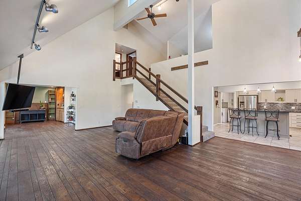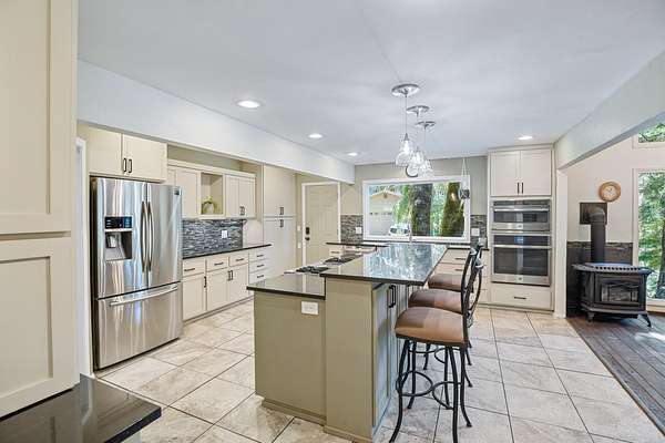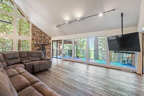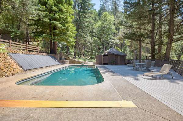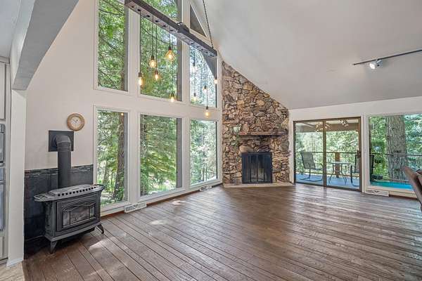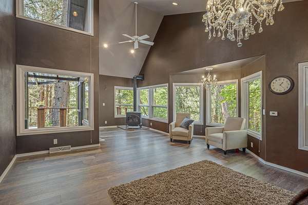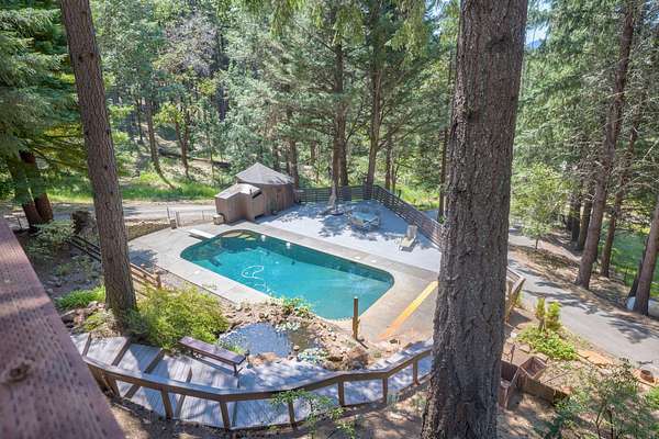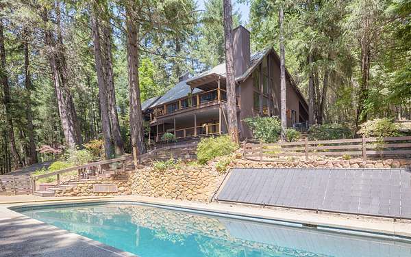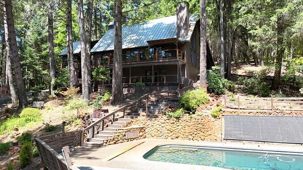 Nestled on 4.99 acres, this amazing 5b/3.5b 3,919sf home has so much charm! The great room's soaring windows showcase breathtaking mountain views. The main floor offers a spacious primary suite with a propane stove; a cozy fireplace & a propane stove in the great room; office/nook with wet bar; laundry room; beautiful kitchen with granite countertops, stainless-steel appliances & plenty of storage. Primary bath has a walk-in shower, tub, double sinks, heated floors & large walk-in closet. Upstairs has 3 bedrooms, full bath & a loft. Brand new carpet & bedroom flooring. The finished daylight basement includes a 5th bedroom, full bath, kitchen & family room with a private entrance--ideal for multi-generational living. Outdoor spaces shine with decks on both levels overlooking an amazing in-ground pool & water feature. Additional amenities include a detached garage, wine/canning cellar, barn with boiler, shed, generator, fruit trees, & more. A rare blend of charm, comfort & functionality!