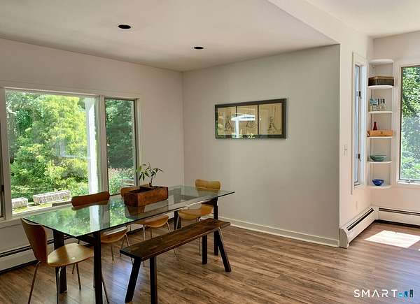 A mid-century modern-inspired, one story Litchfield County single family home. This comfortable, furnished (OR unfurnished) 2 (or 3) BR, 1.5 Bath single-family home sits on a 4+ acre lot. In bucolic Bethlehem, the property is located near to the March Farm, The Bantam Market, Arethusa Farms, Bantam Arts, Litchfield Green, Washington Depot Farmers Market, Steep Rock Preservation, the New Morning Market, multiple farms, orchards and trails, as well as boarding/private and public schools. Featuring picture windows in both dining and living areas, there are woodland views across the seasons from beside the working fireplace with large white-bricked hearth and built-in bookshelves. Many sizable closets and ample 2-car garage with expansive storage space. Landscaped yard, covered patio and versatile floor plan invite relaxed living. One year lease. Combo W/D and stainless fridge. Landscaping (leaves, gutters, lawn) with snowplowing are available using designated contractors, set up via landlord. Utilities are tenant's responsibility. Maintenance / annual service contracts for heating system held by landlord.