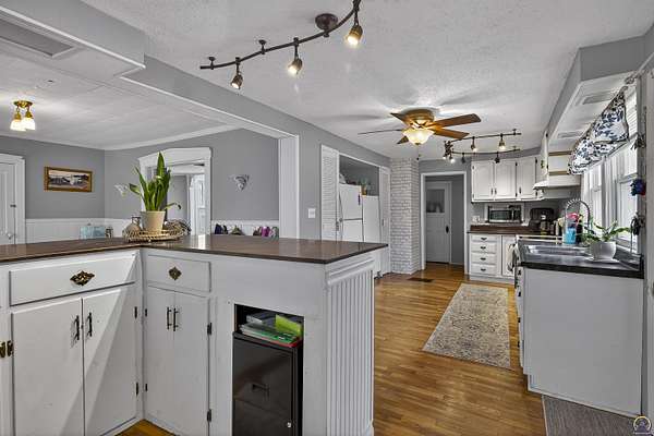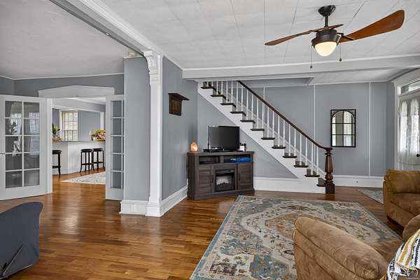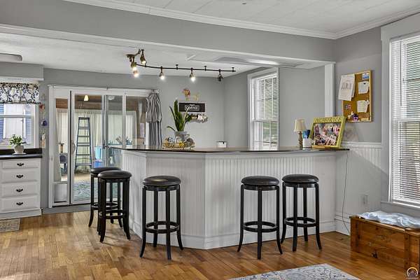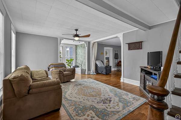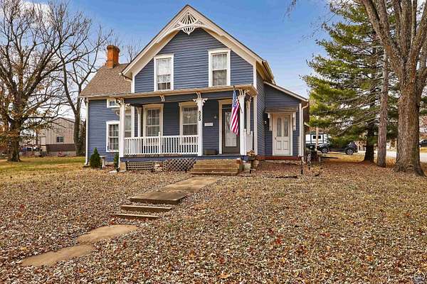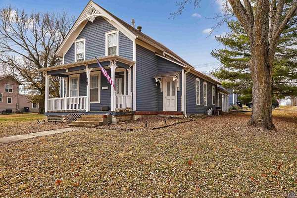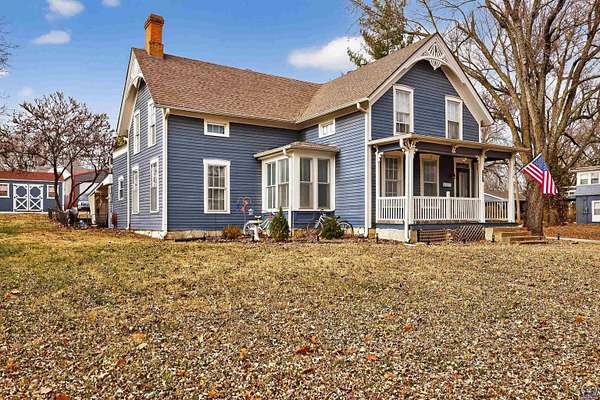 From the curb appeal to the inner body of this home - This beauty has stood time beautifully and truly is a showcase opportunity. Full of character and beautiful historic elements, this historic 1875 build has had a large number of appropriate updates over the years. Central heat and air, major renovations to the basement, an updated electrical panel, and more. Welcome to almost 3,000 finished square foot of living space (plus some). It's rare to see such a level home of this age and character. Large living room spaces can be flexed for formal dining rooms or multiple living room configurations. The kitchen has an addition made perfect for entertaining with an additional bar/serving station or office set up. In the primary kitchen area, large inset pantry spaces with room for your freezer or a double wide refrigerator system. Lots of cabinet spaces exist. Off to the south, a walk in additional pantry space. With main floor laundry around the corner in it's separate room away from household guests. Modern amenities from kitchens to bathrooms with tons of updates. There's a main floor oversized bedroom space with primary bath or main floor full bathroom. Hardwood floors grace this home, well kept. Bright spaces and tall ceilings abound. A sweet surprise is the double glass doors entering the enclosed porch with vaulted ceiling and wood beams. Set this room up for all season entertaining and additional living space, This is over 200 more finished square footage of opportunity. Let's walk upstairs before discussing the outdoor offerings! So many of us are looking for that walk-in closet space - and this home offers multiple upstairs with multiple oversized bedrooms, architectural wall built ins for media centers or hobby spaces, with additional hallway built ins perfect for winter jackets and more. (there's even a sneak peek in the hallway built ins which prior owners left showing some of the original wallpaper inside). A beautiful mix of timeless meets contemporary. Tastefully honoring the home's past and embracing the modern amenities and comfort. The exterior additional patio area, garden spaces and additional covered patio offers extended outdoor living. This beautifully maintained oversized corner lot hosts two outbuildings for great exterior storage.