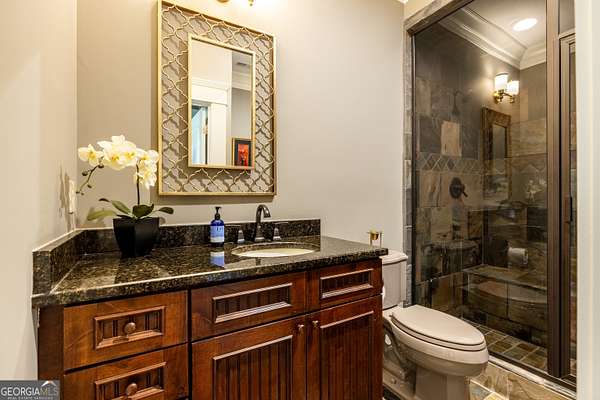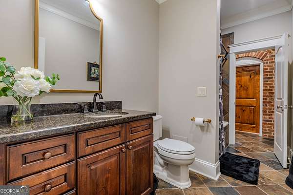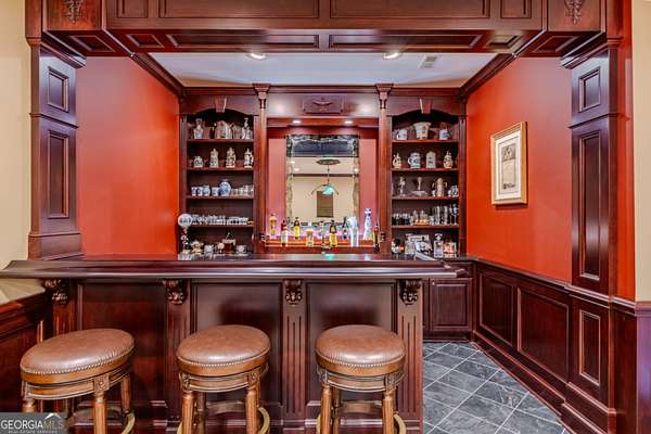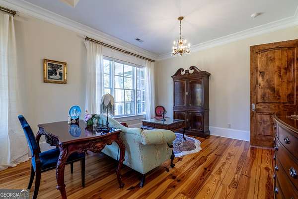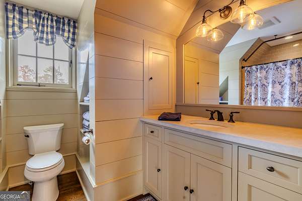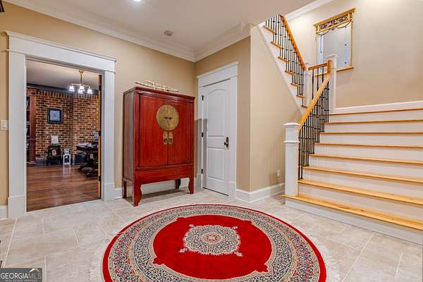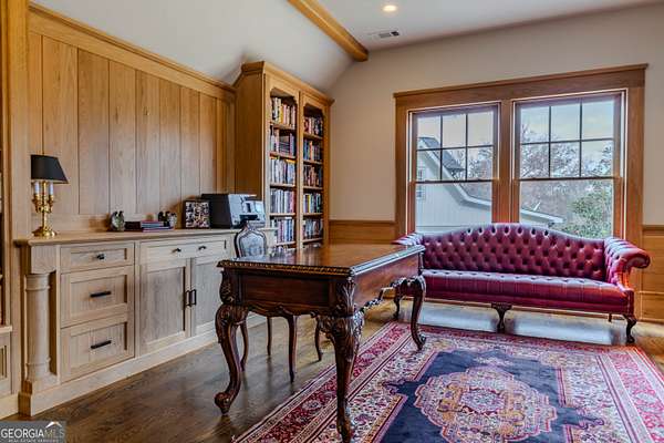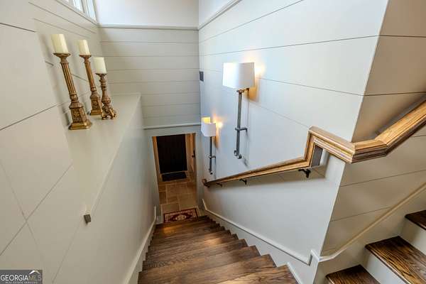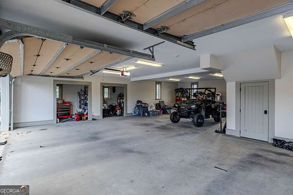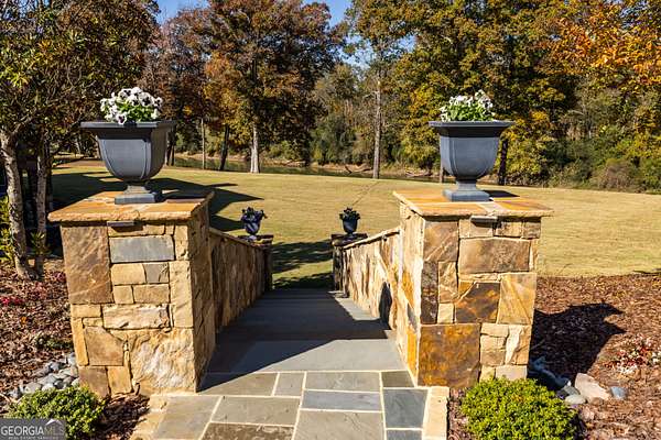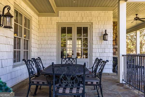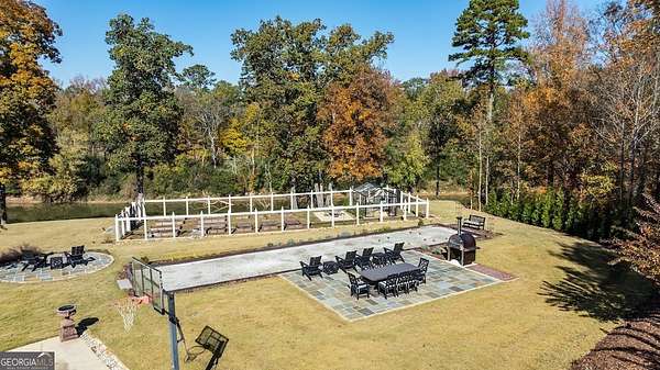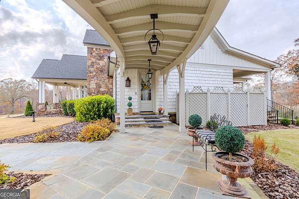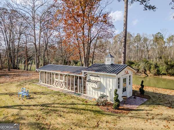 This rare French Country riverfront estate sits on almost 10 private acres in the exclusive North River Farms community, overlooking pristine Berry College land. With panoramic river, forest, and mountain views in every direction, the property offers exceptional privacy and serenity while remaining just over an hour from both Atlanta and Chattanooga. Boasting over 10,000 square feet under roof, a very extensive interior and exterior renovation has elevated this home into a luxury retreat ideal for entertaining and everyday comfort. The property features over 2,800 square feet of covered porches with tongue-and-groove solid wood ceilings, creating endless outdoor options for enjoying the surrounding scenery year-round. Outdoor amenities include bluestone walkways, fieldstone masonry walls and fireplaces, Unilock Copthorne brick patios, flagstone porch flooring, an organic garden with greenhouse, an orchard, a custom chicken coop and run, a bocce court, iron railings, a custom iron garden gate, and a striking landscape-lit fieldstone staircase with masonry pillars. Utilities and site work are already in place for a future pool, and the property includes a full irrigation system and frost-free spigots. Inside, the home opens to a dramatic two-story living room with tongue-and-groove vaulted solid wood ceilings with exposed beams, solid wood custom wainscoting, solid white oak and heart pine flooring, a fieldstone masonry fireplace, custom built-ins, and floor-to-ceiling solid wood French doors framing stunning natural views. The main-level primary suite includes remote Hunter Douglas shades, two custom closets, radiant heated flooring, dual bath areas, a large slate walk-through shower, and a soaking tub. The kitchen and keeping room feature custom cabinetry, a large island, a stone fireplace, and premium Wolf, Viking, and Miele appliances. The first and terrace levels laundry rooms also have new Speed Queen washer/dryers and LG refrigerators. Upstairs are two en-suite bedrooms with office/sitting areas with hardwood floors and custom closets, plus a library overlooking the living room. The terrace level offers a private screening room, a wood-paneled billiard room and bar, an 800-bottle climate-controlled wine cellar, exposed brick accents, a recreation room, a second laundry/kitchenette room, guest/office space, bedroom suite, steam shower/spa room, tons of storage, and a safe room/storm cellar. A 6-car garage connects to a beautifully finished apartment offering 1,400 square feet of living space above the garage, complete with its own HVAC, electrical and power service, kitchenette, and lots of custom storage-ideal for a home office, guests, extended stays, or multigenerational living on the property. In addition to its privacy and natural beauty, the estate enjoys all the amenities of the North River Farms community, which spans over 70 acres and includes a lakefront clubhouse, a stocked fishing lake, and extensive activity trails perfect for walking, running, biking, and exploring the outdoors. The neighborhood's quiet landscape, abundant wildlife, and preserved surroundings enhance the peaceful, retreat-like feel of the property. This extraordinary estate must be seen to be fully appreciated. Pre-qualified buyers should contact the Listing Agent or Hardy Realty to schedule a private tour.