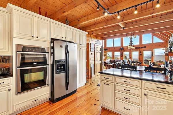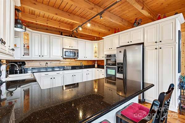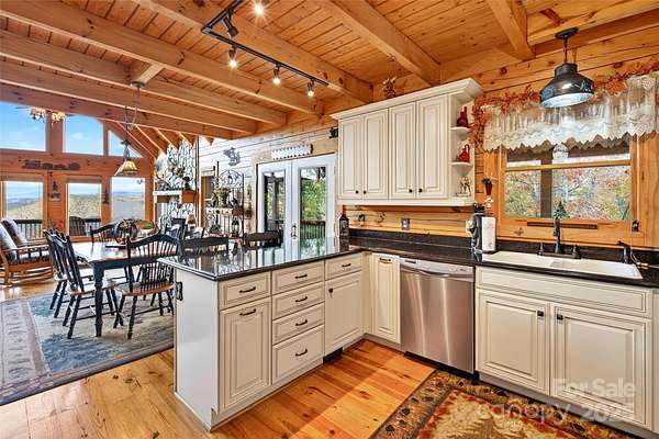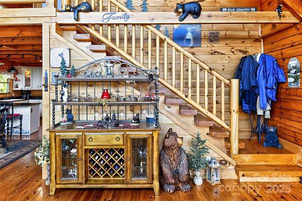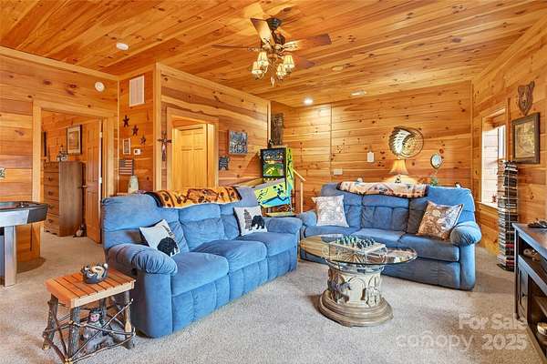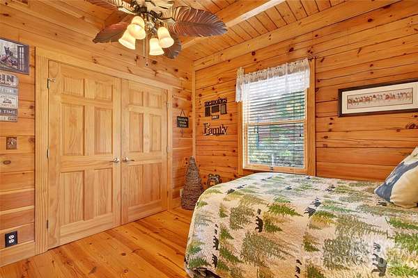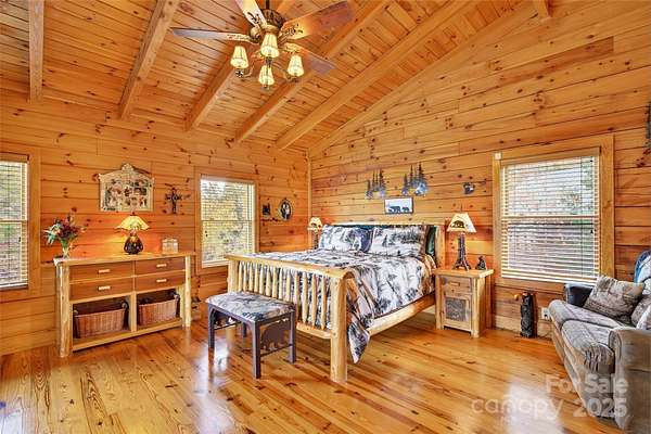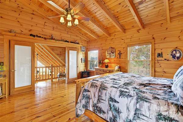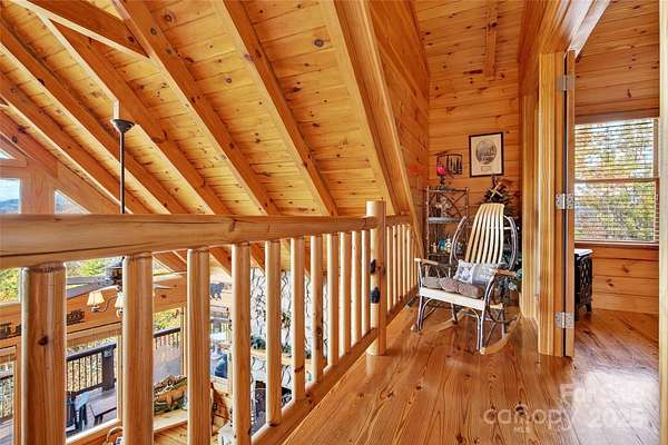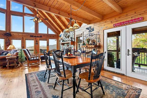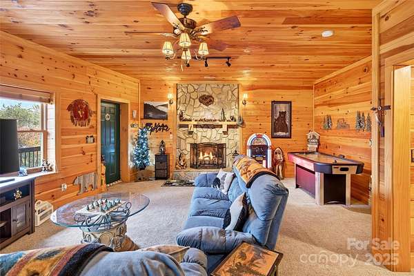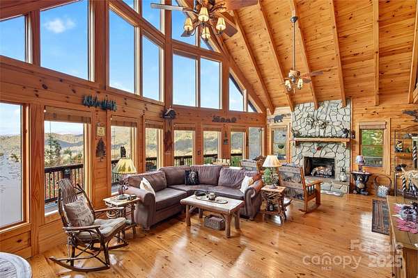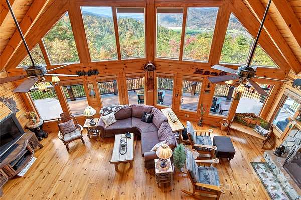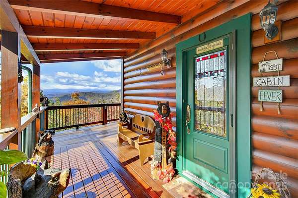 Immaculate and fully furnished, this three level log cabin sits on 3.5 private acres and offers one of the most breathtaking long range mountain views in Western North Carolina. With three bedrooms (two bedroom septic permit) and three full bathrooms, the open concept layout features soaring cathedral ceilings and abundant natural light. The home is being sold completely furnished, including all interior and exterior furniture, wall decor, and kitchenware, making it truly move in ready or ideal for immediate rental income. The lower level offers flexible use as a private apartment or game room, while two gas fireplaces can be converted to wood burning for added rustic charm. A detached two car garage and horseshoe driveway provide easy access, and the paved road from the gated entrance ensures year round convenience. The west facing wraparound decks, both covered and open air, are perfect for enjoying sunsets over Honeycutt Mountain and the iconic Black Mountains. This property also offers expansion potential, with room to build two additional homes, ideal for creating a multi residence family retreat or investment opportunity. Lovingly maintained by the original owner and used only part time, the home has served as a cherished gathering place for family and friends. Located just 15 minutes from Linville Falls, the Blue Ridge Parkway, Linville Falls Winery, a local general store and the Linville Gorge Wilderness, this property is perfectly positioned for outdoor adventure. Lake James is just 25 minutes away, and ski resorts are within a 40 minute drive. This is a rare opportunity to own a turnkey mountain retreat with unmatched views, privacy, and potential.