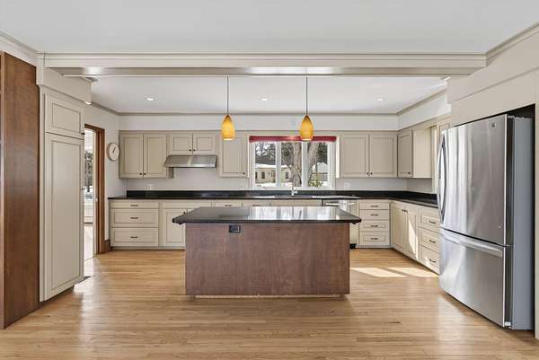 This stunning circa 1825 Colonial offers the best of both worlds - timeless character and thoughtful modern updates - set on 12.31� rolling acres with sweeping views of Lake Auburn and Mount Sabattus. Originally built nearly 200 years ago, the home has been meticulously renovated to honor its historic roots while embracing the comforts and conveniences of today. Step inside to a spacious, light-filled great room where coffered ceilings and period craftsmanship blend seamlessly with an easy, contemporary flow. Walls of windows frame breathtaking views across open fields and treetops stretching all the way to the lake. Custom built-ins and a substantial fireplace create a warm, welcoming focal point - equally suited for quiet evenings at home or lively gatherings. At the heart of the home, a beautifully appointed chef's kitchen offers abundant cabinetry, stone countertops, and stainless steel appliances. From here, step directly out to your private backyard retreat -- a sizable deck overlooking the peaceful, pastoral landscape, perfect for morning coffee or summer dinners under the open sky. The thoughtfully designed layout includes four bedrooms and three-and-a-half baths, highlighted by a gracious primary suite with en-suite bath, a dedicated in-law or guest suite, and an upper-level space ideal for a studio, office, or creative retreat. Major systems- including windows, siding, electrical, roofing, and even a solar hot water system - have all been updated, offering true peace of mind. Beyond the home itself, the land tells its own story. Once used for equestrian pursuits, the acreage features open pasture with potential for a riding ring, extensive perennial gardens, and meandering trails that lead to conservation land along the shores of Lake Auburn. Conveniently located just minutes I-95 access, and nearby ski resorts, this exceptional property is a rare offering - where history, natural beauty, and modern comfort come together in one unforgettable Maine e