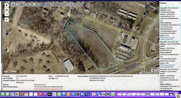 Incredible Ground Lease Opportunity! 8 acres of prime commercial real estate on the desirable West side of I-24 on Paducah's main retail corridor! This land has FOUR potential points of ingress/egress available including Hinkleville, Harris Road as well as private road access behind Hucks. 17,648 VPD. Front tract is County and and back/side tract has been annexed in to the City. Site Ready with utilities.
