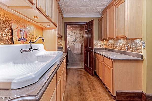 Artful, grand, and steeped in history, this extraordinary Rome estate spans 3 lush acres and offers a rare blend of timeless elegance and pastoral charm. Behind the gardens and mature trees, you'll find two residences, a stable, a 4+ car garage, a pond, and multiple patios designed for quiet moments and grand entertaining alike. Once known as Station 13 on the Underground Railroad, the main residence dates to 1850 and brims with original character-tin ceilings, intricate millwork, and elegant architectural details throughout. Gracious living spaces have been lovingly preserved and restored. At the front of the home, a parlor and formal living room frame the central hallway, while at the rear, the showstopping great room delights with sculpted woodwork, arched windows, and rows of French doors that open to a genteel veranda. The kitchen is a true centerpiece, where vaulted ceilings and a professional-grade LaCanche range meet glowing granite countertops and a custom coffee bar. An elevator discreetly serves both floors, offering convenient access to the upstairs bedroom suites. Beyond the main home, the original barn has been converted into a guest residence-a hidden gem ready to be restored into a charming Airbnb or private cottage. A glass-lined atrium, antique fixtures, and a Juliet balcony hint at its unique character and promise. Outside, the estate's grounds whisper of a storied past, waiting to be revived. A stable with three small stalls, a fenced pasture, and open acreage offer endless possibilities-whether for equestrian pursuits, hobby farming, or peaceful country living. Opportunities like this are rare. Come explore the magic, history, and potential of this one-of-a-kind estate-and imagine what your next chapter could be.