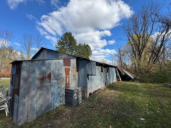 Full of potential, this farmhouse sits on ~2.5 acres of both cleared and wooded land. Offering 4 bedrooms and 1.5 baths, the home features a side deck and back patio perfect for relaxing or entertaining. Updates include a new roof and fresh exterior paint in 2022. The property also includes two storage sheds and an old pole barn, providing plenty of space for equipment, hobbies, or animals. Home needs interior work and is being sold as-is - a great opportunity to restore and make it your own rural retreat. Additional 35+ acres owned by seller is also available to purchase.
