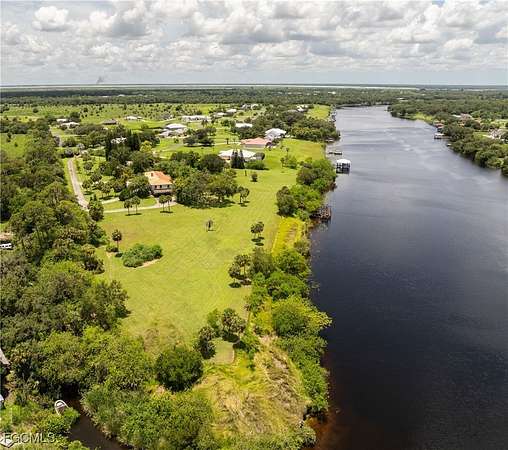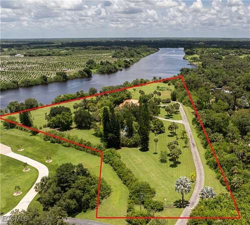 STUNNING SUNSETS AND SUNRISES ARE YOURS AT THIS SPECTACULAR 5.49 ACRE SITE (8+ acres including Army Corps of Engineers easement) WITH 750+ FEET ON THE INTERCOASTAL WATERWAY PLUS 1000+/- FEET ON BANANA BRANCH CREEK! Home site includes an 8,000 +/- SF 2 Level residence with a close to new copper colored galvalume metal roof, a new $35k septic system, and a new $10k water softener system by Water Medic. The home could be updated or removed if you prefer a different location for your estate home. The home has multi-levels with the living area (top floor) consisting of a living/family room area with brick fireplace, spacious kitchen/dining area, separate laundry room, master bedroom suite with reading area, multiple closets, master bath, and library/office open to living room; 3 guest bedrooms and 2.5 additional bathrooms. The lower level of the home includes a huge game/exercise/Florida Room with a jacuzzi and brick fireplace. There is also a second master suite, and miscellaneous storage rooms plus a separate hallway to the 3-vehicle garage. The home has various decks, in disrepair, and some electric hurricane shutters. The property also has a nicely designed dock, needing repair. Property has a private yet convenient location just off of SR 80, just east of Fort Myers, but is hidden in clear sight! A ONE-OF-A-KIND LOCATION!