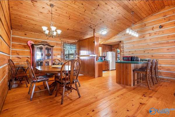 Welcome to this Rustic log home with stunning views! Sit on the large front porch and take in the scenery with not only views of Weiss Lake but the beautiful mountains in the background. Inside you will find an open concept with a cozy living room, eat in kitchen, 3BR 2 BA and a large laundry room. Outside you can enjoy LAKE ACCESS, a large front porch, screened in back porch and a private back yard for entertaining with an inground POOL! This property also offers THREE lots totaling the acreage to 2.04+/- acres and interior fully furnished! Upgrades include encapsulated crawl space, new roof, new AC unit, new fence and a fresh coat of stain on the outside of home.