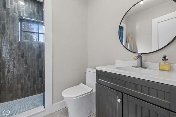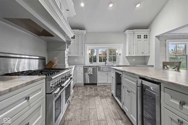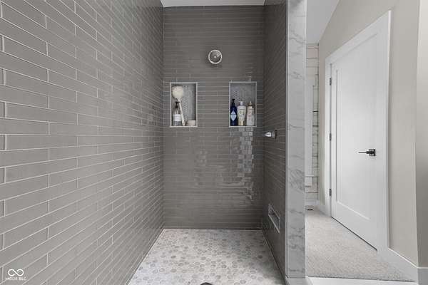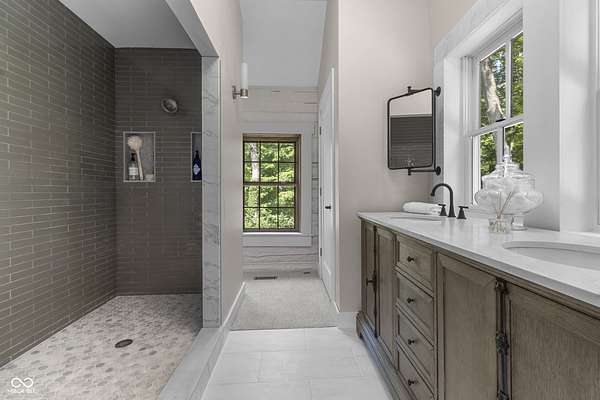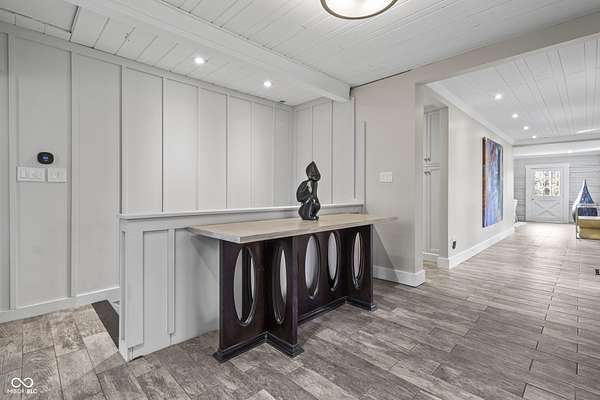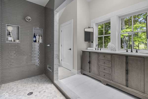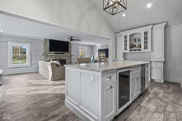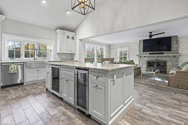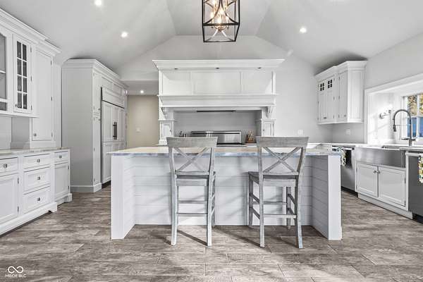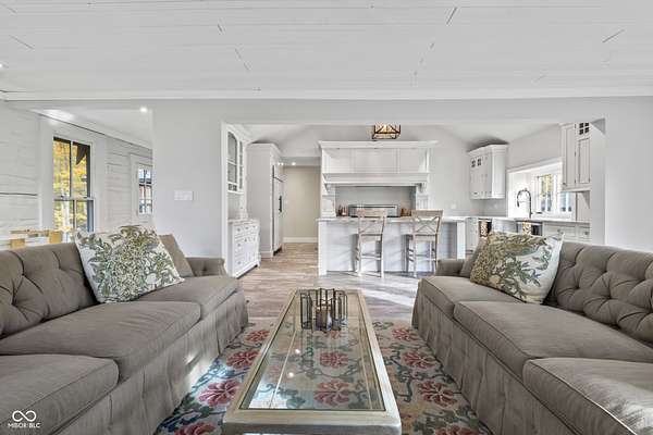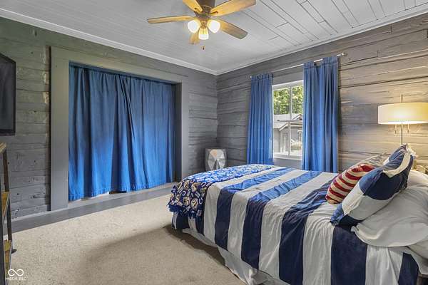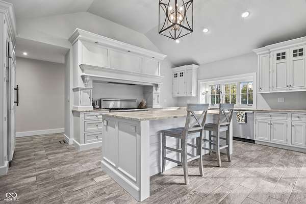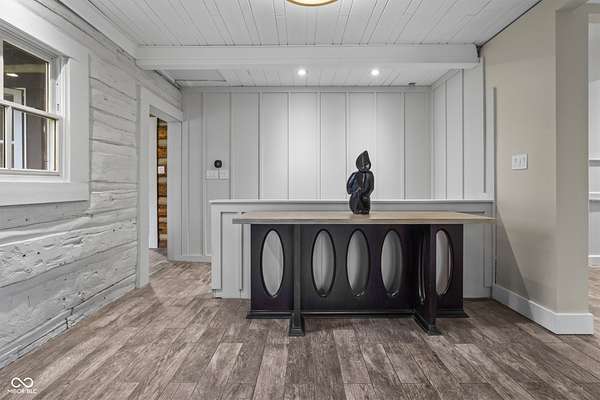 Experience a 7 acre private retreat in desirable Zionsville! The private drive "over the creek and through the woods" leads to this secluded and completely updated 4 bedroom, 3 full bath log cabin that has all of it's original charm but with modern and luxurious finishes. A true chef's kitchen features professional appliances and quartz counters, open to the great room boasting a floor to ceiling stone fireplace. The cozy dining room/den has incredible views, and well thought out master on the main with gorgeous ensuite. The finished basement has 2 bedrooms, full bath and huge family room with custom built-ins. Detached garage with additional flex space. Top rated Zionsville schools. Enjoy peaceful views and tranquility from every room - a must see!