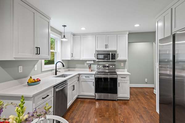 - Dishwasher, Electric Oven, Electric Range, Microwave, Refrigerator, Stainless Steel Appliance(s)