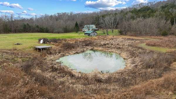Est $1,566/moHistoric charm meets total privacy on the banks of Brush Creek. Step back in time without sacrificing peace and quiet. This stunning early 1900s farmhouse sits on 7+ acres, offering a rare life of seclusion as it is entirely encircled by The Nature Conservancy. The heart of the home is the expansive kitchen, featuring oversized windows that frame picturesque views of your private pond and sprawling backyard. Enjoy your morning coffee on the iconic wraparound porch, or head to the back of the property for direct access to Brush Creek. With two stories of historic character and a location that feels like a private nature preserve, this is more than a home, it's a sanctuary!