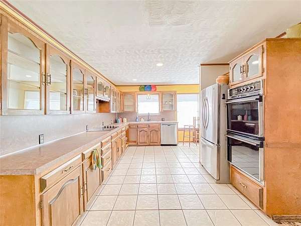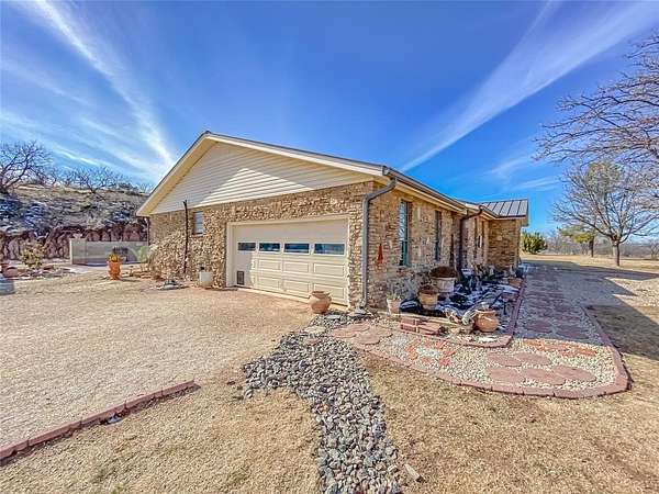 Discover the perfect blend of rustic charm and modern convenience with this stunning Farm and Ranch property in Lawn, TX! Nestled on expansive acreage, this property offers an ideal sanctuary for those seeking tranquility and endless possibilities. Boasting 4 spacious bedrooms, 3 well-appointed baths, and a 2-car garage, this home provides ample room for comfort and privacy. Upon entering, be captivated by the large open floor plan designed for flexible living. The cozy interior exudes rustic charm, boasting warm tones and wood accents that enhance the inviting atmosphere. The heart of the home is a generously sized living area, perfect for gatherings or quiet nights by the fire. The thoughtfully designed kitchen features modern appliances and ample counter space, making meal preparation a breeze. Retreat to the expansive primary suite, complete with a luxurious en-suite bath designed for relaxation. Additional bedrooms are tastefully designed, ready to accommodate guests or serve as flexible spaces for work or play. The second living area offers endless possibilities and has an above ground attached bunker offering added safety and security. Step outside to breathtaking views that surround this idyllic property. The exterior showcases lush land, perfect for agriculture or recreational activities. Two water tanks provide excellent fishing opportunities nearby, enhancing the outdoor experience. Whether viewing the sunrise over the gentle rolling fields or enjoying the starlit nights, the sprawling land offers an unparalleled connection to nature.