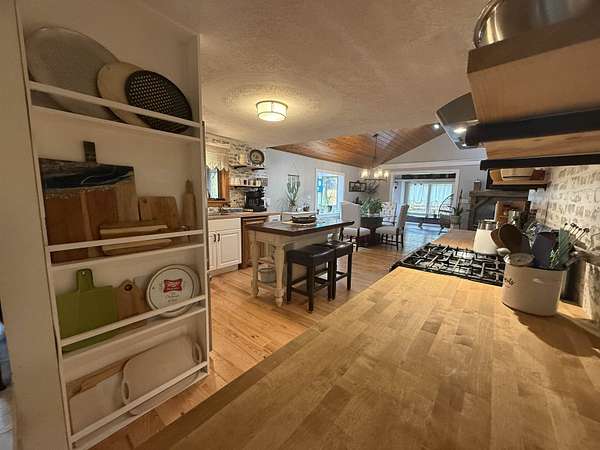 - Breakfast Bar, Cathedral Ceilings, Ceiling Fan(s), Modern Kitchen, Open Floor Plan, Pantry, Window Treatments