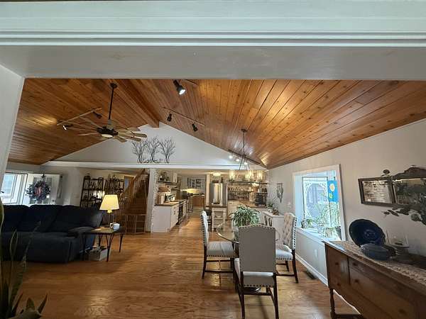 Welcome to your dream home, a stunning one-of-a-kind farmhouse that perfectly blends comfort, charm, space, and endless opportunities! This expansive property that sits on 3.8 acres is ideal for families, entrepreneurs, or anyone eager to embrace the tranquility of country living with the flexibility to cultivate their passions. Just outside of the city of Ogdensburg keeping you close to all conveniences of town and the scenic beauty of the St. Lawrence River. Key Features: Room for Everyone: This expansive farmhouse features 14 thoughtfully designed rooms, including 5 spacious bedrooms, ensuring everyone has their own retreat with 2 full baths. The main bedroom is complete with a serene balcony where you can enjoy evening serenity while you wind down and sip your favorite beverage overlooking the picturesque pond and lush yard. Versatile Layout: The main level welcomes you with an open floor plan that flows seamlessly from one area to another. Perfect for everyday living and entertaining. Enjoy the warmth of family gatherings in the extra living room or family room filled with sunlight that adjoins to the beautiful sunroom. The enclosed screened-in porch opens up to your backyard oasis--perfect for entertaining, enjoying your morning coffee or soaking in the hot tub under the stars. Endless Possibilities: Looking to generate extra income? The impressive 6+ car garage comes with a large space above, ready for you to transform into a rental suite, a home office, or even a creative studio--let your imagination run wild! Garage and above space that has a separate boiler for heat. Hobby Farm Potential: Spread across 3.8 acres, this property features a charming man-made pond surrounded by open space--ideal for starting your own hobby farm. Envision raising animals, planting gardens, or simply enjoying the great outdoors right in your backyard. Functional Design: This farmhouse is designed for modern living with two additional bonus rooms downstairs, perfect for guest accommodations or a dedicated office space. The butler's kitchen awaits your culinary adventures, equipped for both everyday meals and entertaining guests. Pet-Friendly: Your furry friends will love the secure fenced yard area, complete with a convenient doggy door, allowing them to explore their surroundings safely. Centrally Located near Fort drum, with the convivence of being close to colleges in Canton, Potsdam and Watertown. Walking distance to the St. Lawrence River, close to the boat launch and a short drive to great fishing at Black Lake. Keep warm in the winter with the brand-new furnace, pellet stove or propane fireplace. Beat the heat with the heat in the summer with the central air! This captivating farmhouse is ready to welcome new owners and create lasting memories. Whether you're looking to expand your family, start a business, or simply enjoy a peaceful lifestyle, this home has it all. Don't miss your chance to own this versatile property--schedule your private tour today and step into the lifestyle you've always dreamed of!