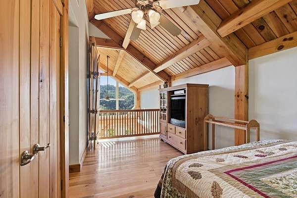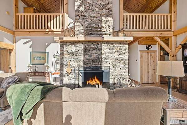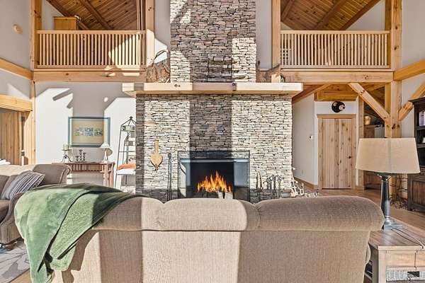 Nestled in the sought-after Highland Gap subdivision, this exceptional traditional two-level home with a finished basement offers the perfect blend of mountain serenity and refined comfort. Set on 5.71 private, wooded acres, the property showcases breathtaking long-range mountain views, the soothing presence of a natural creek, and a picturesque waterfall that creates a truly peaceful retreat. Inside, the home features approximately 3,001-3,550 square feet with 4 spacious bedrooms and 3.5 baths. The great room welcomes you with soaring ceilings and a stunning stone fireplace, creating a warm and inviting gathering space. The well-appointed eat-in kitchen offers modern appliances and ample room for everyday living and entertaining. The finished basement expands your living space with a game room, wet bar, and additional bath-ideal for hosting guests or relaxing evenings at home. Outdoor living is where this property truly shines. Enjoy the sights and sounds of nature from the deck or covered, screened porch, overlooking your view, private acreage, flowing creek and the beautiful waterfall, while adjoining USFS land.