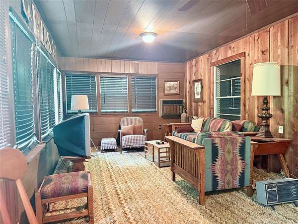 Improvements include a well-maintained cabin originally built in the 1960s, offering a comfortable retreat that has been cared for over the years.