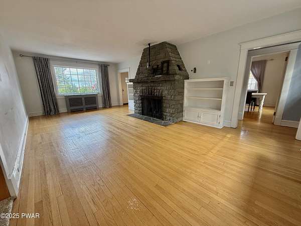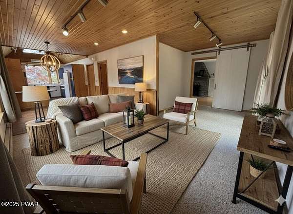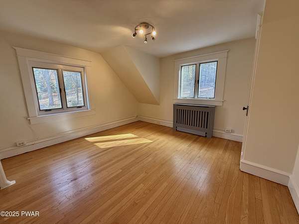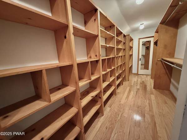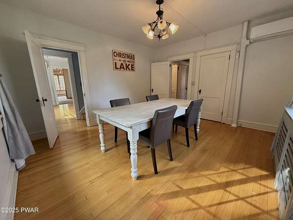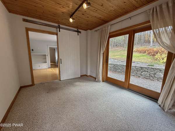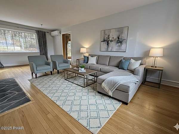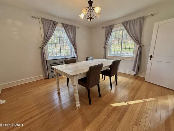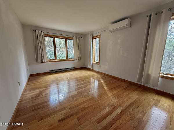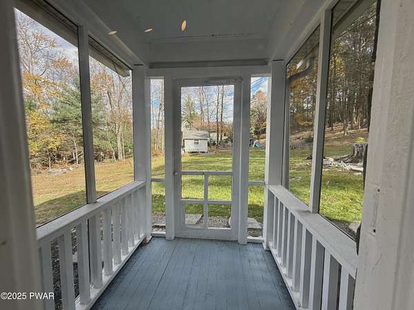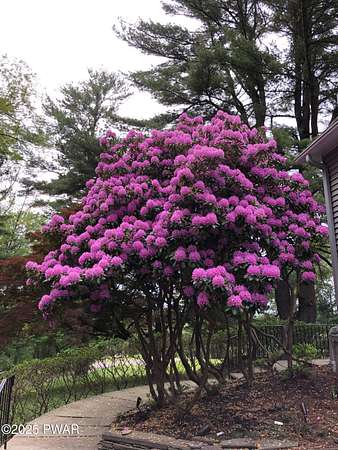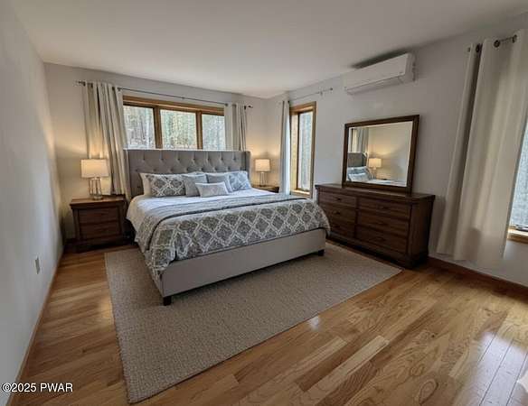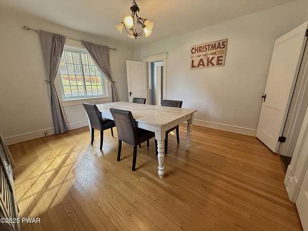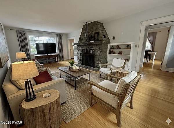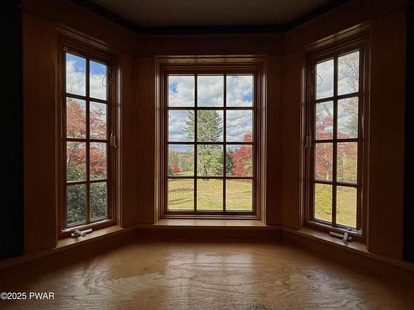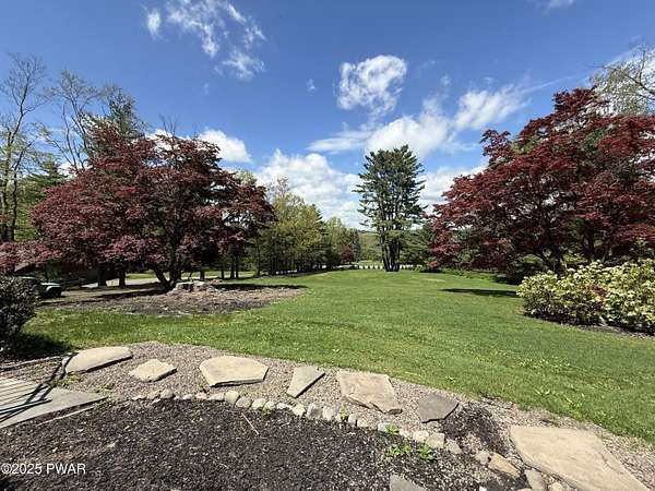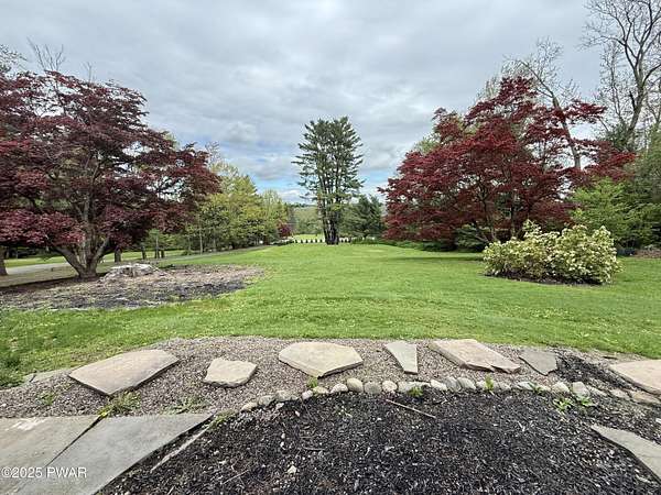 This amazing property offers it ALL - It sits outside of a community on 3.47 acres perched on top of the expansive front yard with seasonal views of Wallenpaupack! You will immediately admire the elegant, yet timeless bluestone stone exterior and long, private driveway.Imagine starting off your day cooking breakfast in your large kitchen with the view of your expansive private property. The kitchen and dining area feature beautiful tongue-and-groove ceilings, giving it that ''lake feel''. The dining area leads you through a county barn door to your bright living room, featuring an oversized stone fireplace with a remote-controlled propane insert that adds warmth and coziness to the living space. The original hardwood floors add even more character to this great space. You will appreciate the large windows throughout the home that fill every space with natural light. The expansive office features wooden built-in bookshelves, a 15-foot cathedral ceiling and a bay window, offering a perfect spot to relax or work in privacy! Also on the main level is a great playroom or dining room that can also be used as addition sleeping space. In between these two room is a full bathroom, complete with a tiled shower. On the second floor, you will find a primary bedroom with a spacious en-suite bathroom featuring a jacuzzi tub and a walk-in closet with wooden shelving. There should be no complaining of lack of storage space here! In addition to the walk-in closet, there are multiple cedar closets throughout the home. Just down the hall you will find 3 additional bedrooms and a beautiful third full bathroom with a tiles shower/tub combo.There are newly installed split units in each room ensuring you will be comfortable year-round. In addition, there is a stand-by Generac home generator, giving you ultimate peace of mind through every season.