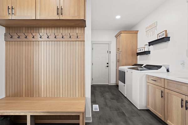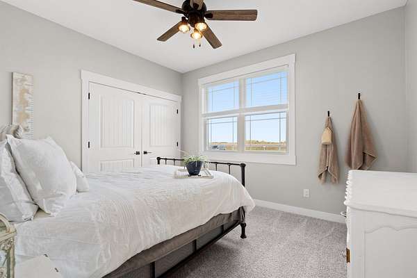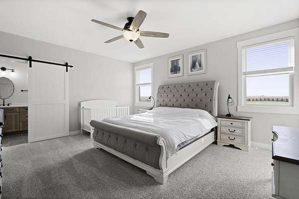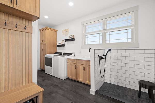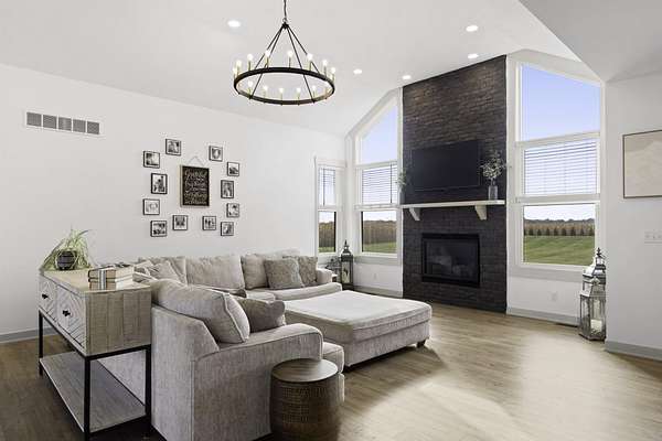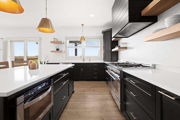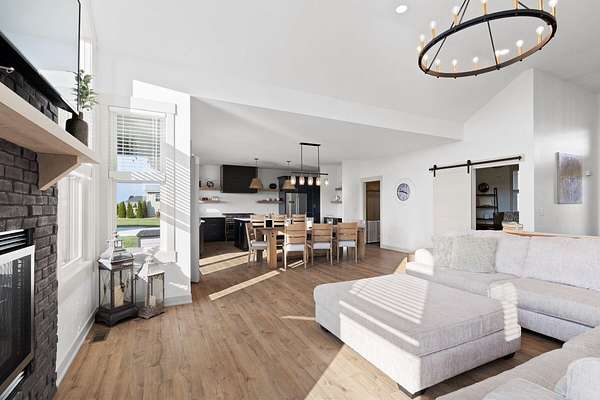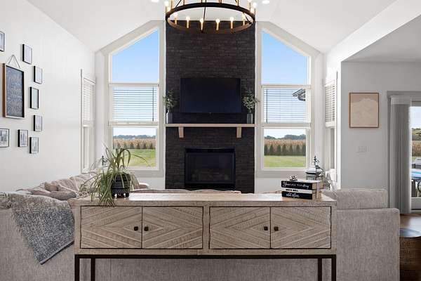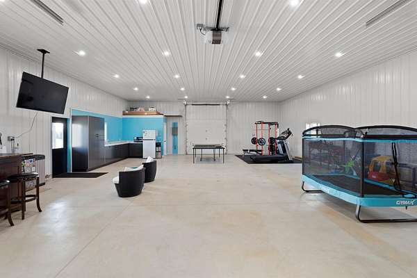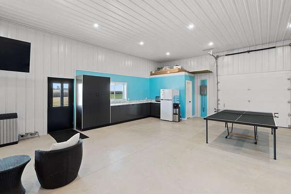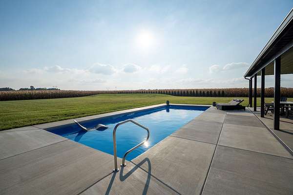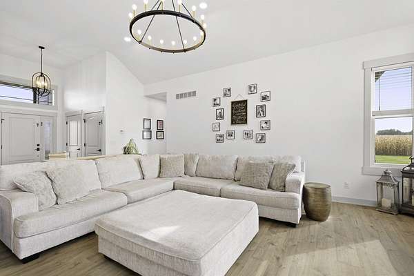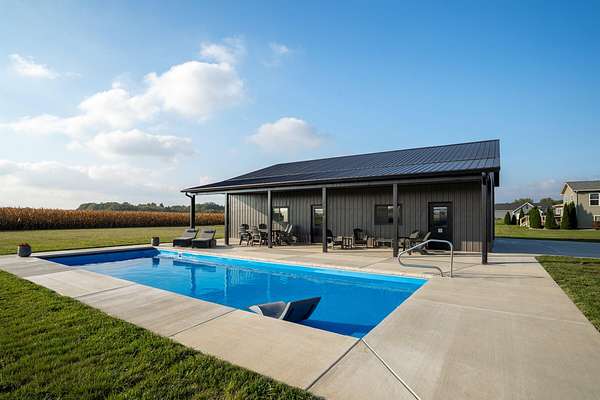 Stunning custom ranch offering 4 bedrooms, 3 baths, a main floor office, and over 3,500 sq ft of finished living space on 1.52 acres! Designed with modern efficiency and comfort in mind, this home includes SolarEdge solar panels with a 10kW backup battery (2023), a heated inground fiberglass pool (2024), and a new 36'x48' barn/pool house (2024). The exterior features LP SmartSide siding with stone accents, a covered front porch, and a covered back patio with an additional walkway leading to the garage. Inside, 9-foot ceilings run throughout the main level with vaulted ceilings in the living room and entryway. The open-concept layout offers spacious living and dining areas with custom cabinetry and shelving, a floor-to-ceiling stone fireplace with limestone mantel, and an inviting flow perfect for entertaining. The primary suite includes a walk-in closet, custom double vanity, and walk-in tile shower. The finished basement includes 9 ft. ceilings and features a large open entertaining area with a dry kitchenette, two bedrooms connected by a spacious walk-in closet, a beautiful bathroom with a walk-in tile shower, and a bonus room perfect for a playroom or exercise space. Additional highlights include an attached 3.5-car heated garage with 8' doors, EV charging capability, a dog wash in the spacious laundry room, 2x6 construction, a Kinetico water system, and a whole-house backup battery. Outdoors, enjoy your own private retreat with a 16'x40' pool featuring a tanning ledge and auto safety cover, plus a fully finished barn with spray foam insulation, cabinets, and a large covered porch. Experience the best of modern country living with space, style, and serenity--all right at home