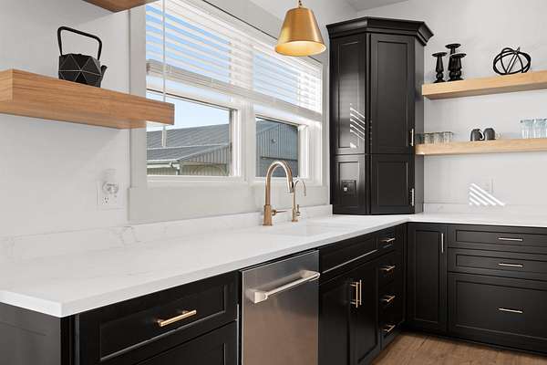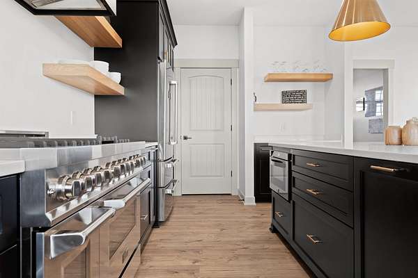 - Dishwasher, Disposal, ENERGY STAR Qualified Appliances, Gas Range, Gas Water Heater, Microwave, Range Hood, Refrigerator, Stainless Steel Appliance(s), Water Softener Owned