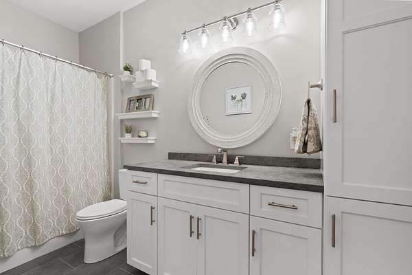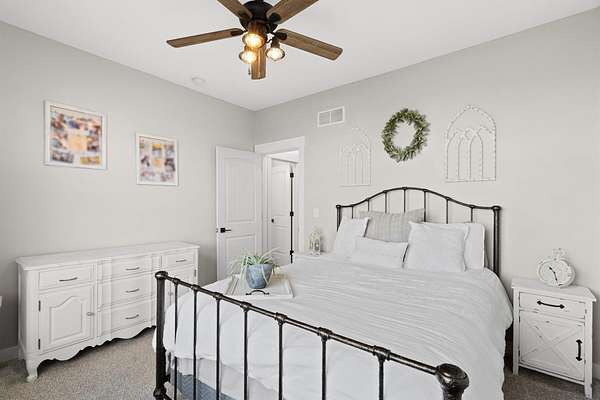 - Ceiling Fan(s), Double Vanity, Eat-In Kitchen, Entrance Foyer, High Ceilings, Kitchen Island, Open Floorplan, Pantry, Recessed Lighting, Vaulted Ceiling(s), Walk-In Closet(s)