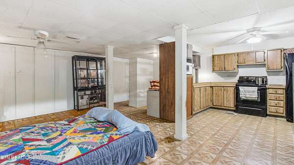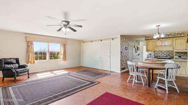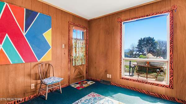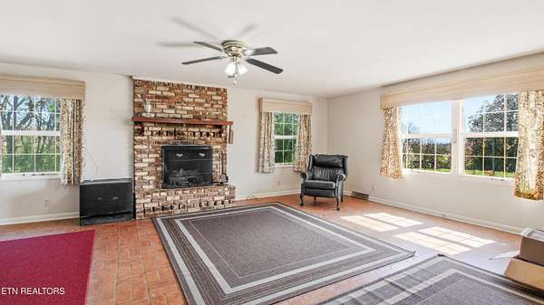 Panoramic mountain view! Enjoy country living in Strawberry Plains TN on 4.86 acres offering wooded privacy, pasture land and original character with potential to customize for your lifestyle! Two story basement mid century modern home maximizes window placements for beautiful mountain views. Walkout finished basement features additional living quarters. Main level includes a formal living and dining area, cozy family room w/masonry fireplace, eat in kitchen and office with separate entrance (perfect for home office) plus one full bath and a half bath! Main level screened porch runs the length of the house. Upper level includes primary bedroom with full bath and 2 additional bedrooms and a full bath. Lower level has a spacious family room with 2nd masonry fireplace, 2 bedrooms, full kitchen and full bath plus lots of extra storage and screened porch area. Exterior features include a 3 car garage and small barn, mature fruit trees and gazebo.