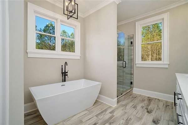 - Beamed Ceilings, Crown Molding, Double Vanity, Entrance Foyer, High Ceilings 10 ft Main, High Ceilings 9 ft Upper, High Speed Internet, Vaulted Ceiling(s), Walk-In Closet(s)