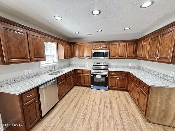 Welcome home to this beautifully updated 3-bedroom, 2-bath home that blends comfort and modern style nestled on a quiet road with 2.7 acres of peaceful surroundings. Step inside to find an open, inviting layout with fresh paint in soft, contemporary tones, new luxury vinyl plank flooring in all main areas, and plush new carpet & pad in bedrooms. The kitchen features new granite countertops, stainless steel dishwasher, stove (to be installed) and microwave, as well as updated hardware, lighting, and faucet. The spacious primary suite includes a large walk-in closet and a stunning tiled shower with decorative mosaic accents. Both bathrooms have new granite vanities, lighting, and fixtures. Enjoy peaceful outdoor living on the back deck overlooking a large fenced yard with mature trees and a storage building - perfect for gatherings, pets, or gardening. With an attached two-car garage, new lighting throughout, and a move-in-ready feel, this home offers easy living and timeless appeal. Please look at offer instructions before submitting an offer.