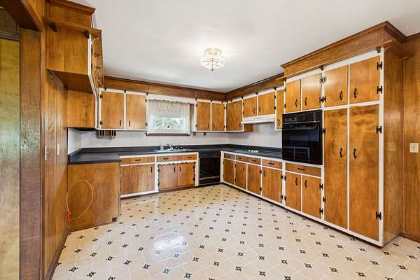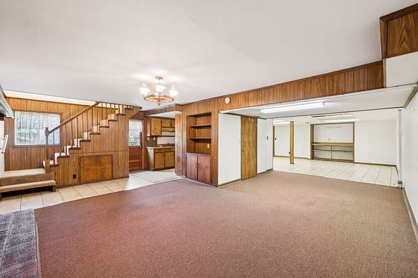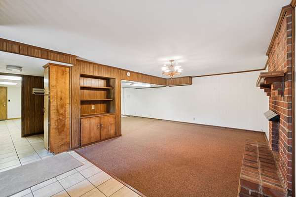 Inside, on the main level, you'll find 3 bedrooms, 2 full baths, and generous living areas with built in bookcases and a fireplace. The eat-in kitchen opens to a spacious dining room, while the basement level features a second fireplace, several recreation areas, a separate full kitchen and another full bath, ample storage, workshop space, and a two-car garage. Basement level could be used as a separate apartment with income potential.