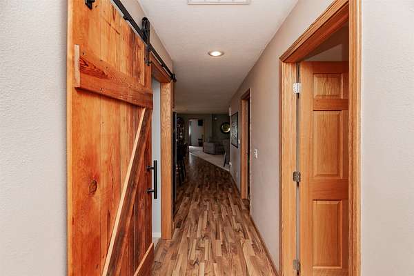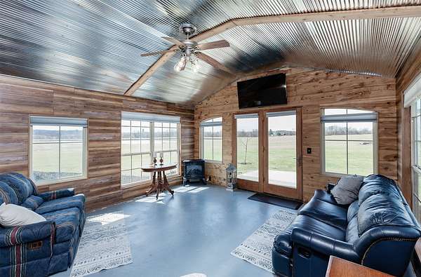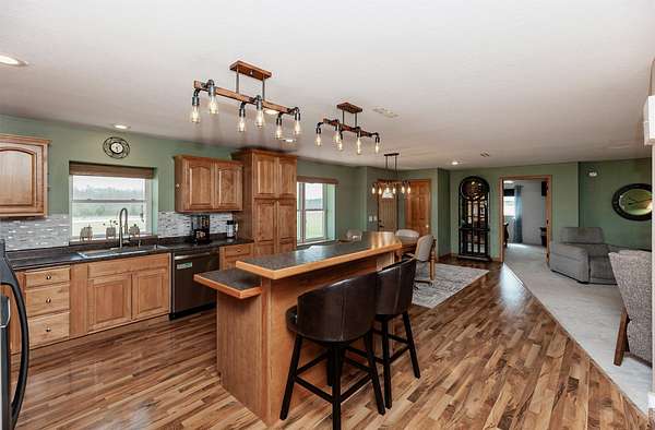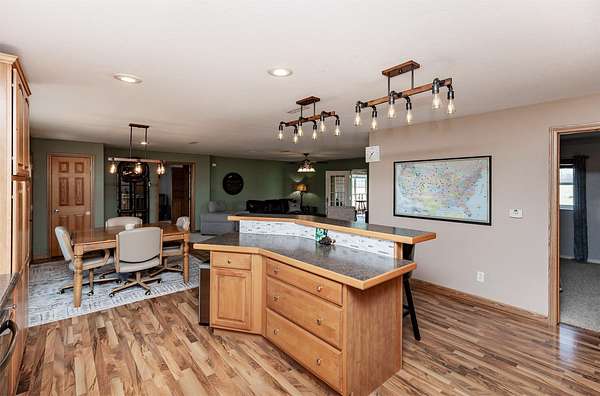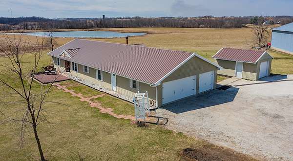 Acreage with approx 7 acres of land backing to the Great Western Bike Trail just south of Cumming (with approx 4 acres tillable if desired). Built in 2007, this thoughtfully constructed 3-bedroom, 2-bath ranch offers true easy living with exceptional durability and efficiency. Featuring 12-inch concrete walls with foam insulation, the home was designed for strength and long-term performance. Radiant in-floor heat runs throughout, providing consistent comfort, complemented by a high-efficiency wood-burning fireplace for added warmth and ambiance. Bonus 2 season sunroom facing west with a pond view. The open floor plan includes alderwood soft-close cabinetry, updated slate appliances, breakfast bar seating, dedicated dining space, and a primary suite with walk-in closet and laundry access. What you'll also love? A 40x100 out-building includes an office and bathroom, with radiant floor heat in half the building. This amazing out-building can accommodate a business, motorhomes, tractors, full gym, landscaping vehicles/equipment or endless possibilities! The home's attached 3-car garage plus an insulated 1-car detached garage complete this exceptional acreage! Only a 15 min drive to Mills Civic Pkwy, come work, live and play (bike!) just beyond the Cumming exit on I35 - but with the privacy and space of an acreage!