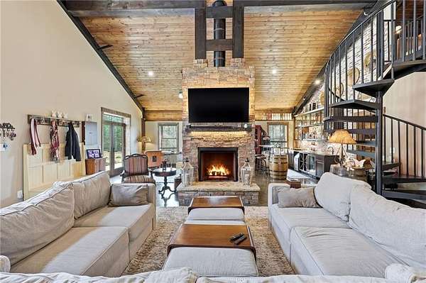 Escape to the peace and privacy of country living with this beautiful acreage property featuring a well-built barndominium and plenty of open land to make your vision a reality. Situated on spacious acreage, this property offers the perfect combination of comfortable living and functional space for recreation or a private retreat. The property features a long, beautiful drive to tranquility. The barndominium features an open-concept layout with a large living area, kitchen, and dining space designed for both everyday living and entertaining. The home offers 3 generously sized bedrooms and baths, ample storage, and durable finishes ideal for country life. The double-sided fireplace adds loads of cozy vibes. Gorgeous kitchen with gas cooktop and copper sink offers sophistication with rustic elements. Outside, the land provides endless opportunities - 3 perfect home sites for additional structures. An additional outbuilding could easily be converted to a tiny house. Property also features a 3 car detached garage/workshop. Nice views and plenty of room to roam, this property is ideal for those looking for freedom, privacy, and versatility. Conveniently located within a short drive to schools, and you can enjoy quiet rural living without giving up access to shopping and dining. Don't miss this rare opportunity to own acreage with a barndominium ready for work, play, or relaxation.
