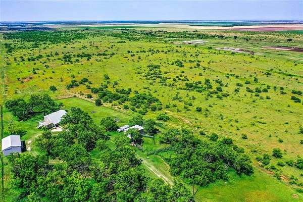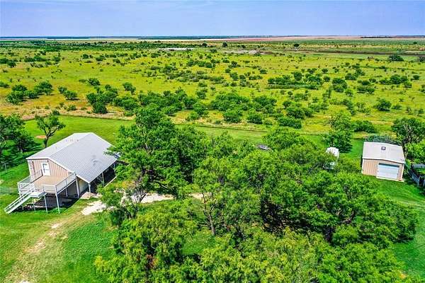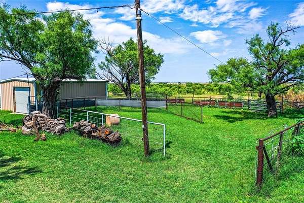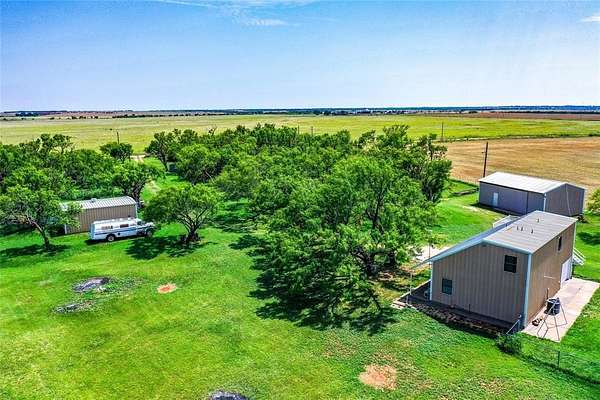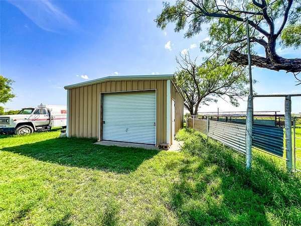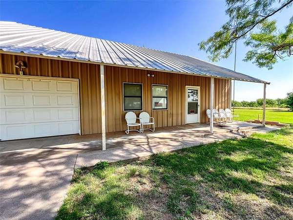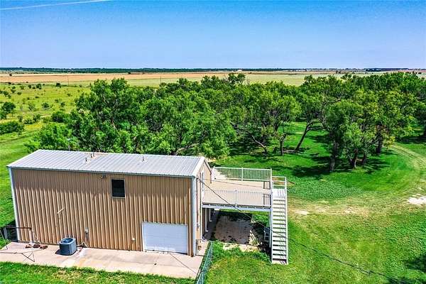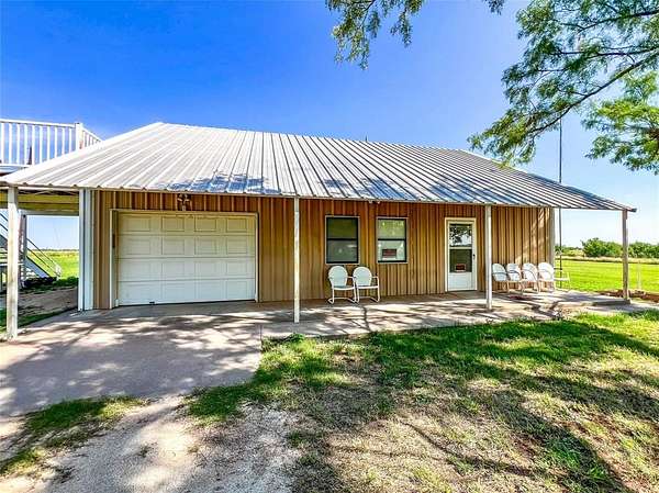 Nestled in the rolling countryside of Jones County, just 4 miles east of Anson and north of US 180, this remarkable 163-acre property offers a unique blend of comfort, privacy, utility, and scenic charm. Situated on the southwest corner of the acreage is a custom-built two-story metal barn home set within a fully fenced 4-acre homestead. The residence features a spacious, open-concept floor plan with the flexibility to accommodate two or three bedrooms and two full bathrooms. A charming front porch welcomes you, while a scenic second-story balcony offers sweeping views of the surrounding landscape. Mature shade trees provide a tranquil setting, and a two-car tandem garage adds convenience. Ideal for a small family, hunting retreat, or weekend getaway, the property includes two well-equipped shops with electricity, a reliable water well, rural water access, and a set of working pens near the home. The remainder of the acreage is fully fenced, with some cross fencing in place, making it perfect for a small cattle operation. Additional features include a second set of working pens, two windmills, and an earthen tank located on the north side of the property. The land boasts a healthy mix of native and improved pastures, featuring grasses such as Klein grass, Bermuda, Silver Bluestem, and B. Dahl Bluestem, offering excellent grazing potential. This is a rare opportunity to own a versatile and picturesque property in a desirable rural location.
