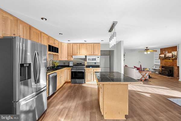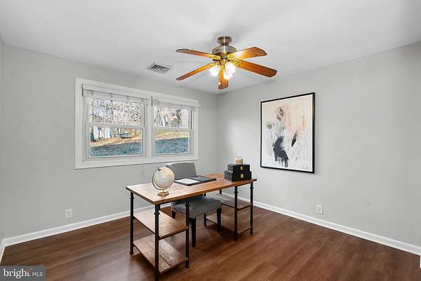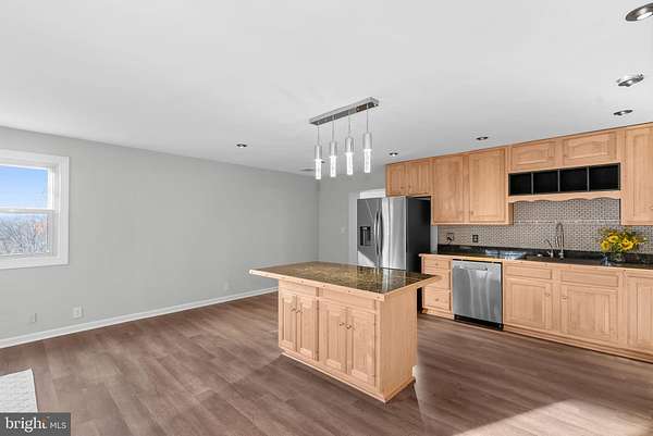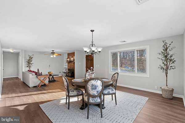 Picturesque expanded rambler with main level living nestled on 2.6 acres of private land. The open concept has been completely refreshed with LVP and neutral paint throughout. This renovated floorplan added a massive primary suite with walk in closet, spacious bathroom and private entrance. There added square footage also includes sitting room which could flex as an office space and added deck with magnificent views of the treelined sunset. The kitchen has granite tile countertops, a stylish backsplash, and solid wood cabinetry. Adjacent to the kitchen is a bright dining room with picture windows, perfect for enjoying home-cooked meals. The family room features a class wood-burning insert and built in bookcases. The two spare bedrooms are generously sized both with overhead light and fan, great natural light and sharing the large hall bath. Acreage also houses work shed with its own electric and air conditioning, along with a two-story kid's play barn equipped with air conditioning and electricity. The meticulously manicured grounds showcase an abundance of wildlife. No HOA and high-speed internet is available. The house includes a fully functioning generator that will be conveyed with the purchase. If you're seeking the epitome of country living, your search ends here!