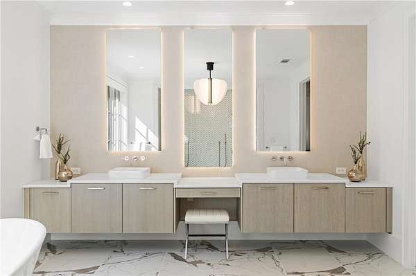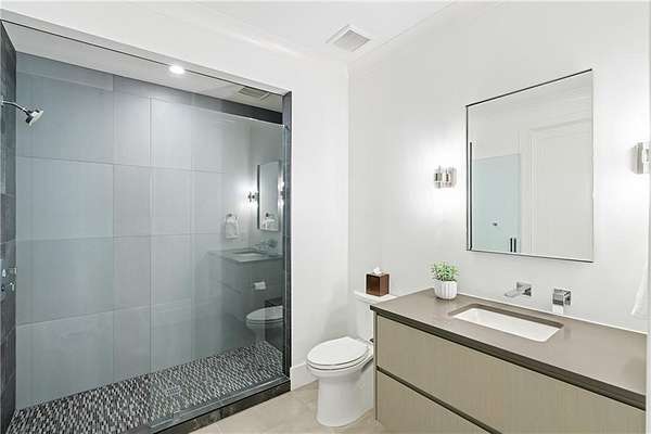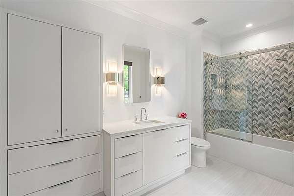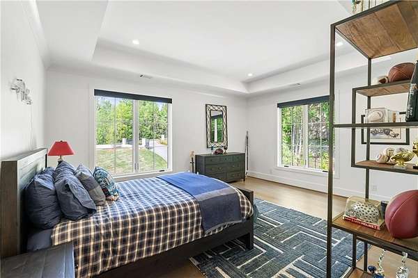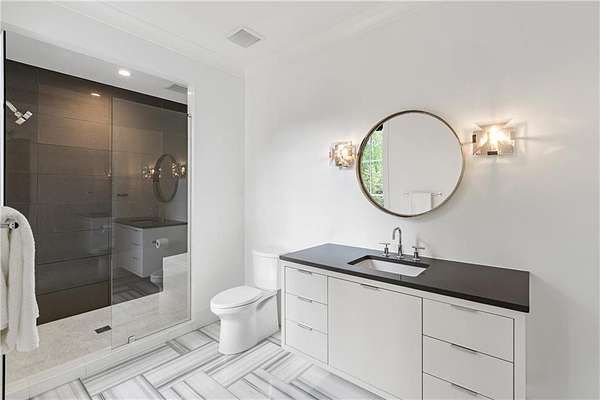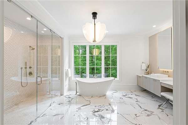 Set on nearly six acres just minutes from Chastain Park, Buckhead, and Sandy Springs, this residence quietly raises the bar. Designed by Harrison Design, built by John Willis Custom Homes, and completed in 2022, this home brings together timeless architecture, exceptional custom craftsmanship, and the rare gift of meaningful acreage in one of Atlanta's most established corridors. This custom built residence with resort-style amenities was designed and built to a level of quality, craftsmanship, and detail that any homeowner can appreciate, from the architectural integrity and material palette to the custom millwork and refined finishes that distinguish every room of the home. At the heart of the home, the kitchen, polished and beautifully scaled, is anchored by custom Pricinsky cabinetry with concealed storage, stunning backsplash, a double island with waterfall marble countertops, dual dishwashers, and a complete suite of Sub-Zero and Wolf appliances. It opens directly into a vaulted keeping room that is one of the home's most inviting spaces, filled with natural light and warmed by a striking fireplace, alongside a dedicated breakfast area. Just beyond, the formal living room is layered with intricate millwork and architectural detail, opening through to a generous screened porch that overlooks the private wooded grounds. Eight bedrooms in total, including two on the main level, allow the home to adapt gracefully to whatever life looks like today or tomorrow, whether that means hosting guests, creating dedicated home offices, welcoming extended family, or reconfiguring the main level bedrooms into a true primary suite for one level living. Throughout the home, the finishes are exceptional. Every bathroom tells its own design story, each finished in marble and outfitted with custom cabinetry built specifically for the space, so that no two are quite alike. The primary bath suite is a true showpiece of the home, designed with a peaceful, spa inspired feel, featuring floating vanities, a freestanding soaking tub, an oversized double shower, and beautifully layered lighting throughout. Just off the bedroom, a fully custom closet has been designed with the same level of craftsmanship and detail, finished to feel more like a private dressing room than a traditional closet. And then there is the outdoor space, which is where this home becomes truly unforgettable. Designed with entertaining in mind, the terrace level opens through retractable sliding doors onto an oversized covered patio outfitted with a swinging daybed, ample seating for outdoor dining, and plenty of space for games and casual gathering. Just beyond, a private courtyard built around a heated saltwater pool and spa features limestone decking, a firepit, outdoor shower, and full kitchenette, all coming together to deliver a resort style experience that gives you every reason to stay home. Inside, a custom bar, recreation lounge, multiple TVs for game days, and a fully outfitted home gym carry the entertainment indoors and keep it going year round. Beyond the pool area, additional acreage offers the opportunity to add lush landscaping, a pickleball or tennis court, a guest house, or expanded garage space beyond the existing three car garage and motor court that already accommodates more than 30 vehicles. A whole house generator stands by for added peace of mind. 5260 Long Island Drive is not just a beautifully built home. It is a complete lifestyle property, refined, livable, and exceptionally well executed. Located just minutes from some of the area's most prestigious private schools and country clubs as well as Chastain Park and the amenities and lifestyle it offers, including the golf course, tennis center, horse park, walking trails, and outdoor amphitheater, and dining at The Chastain restaurant.