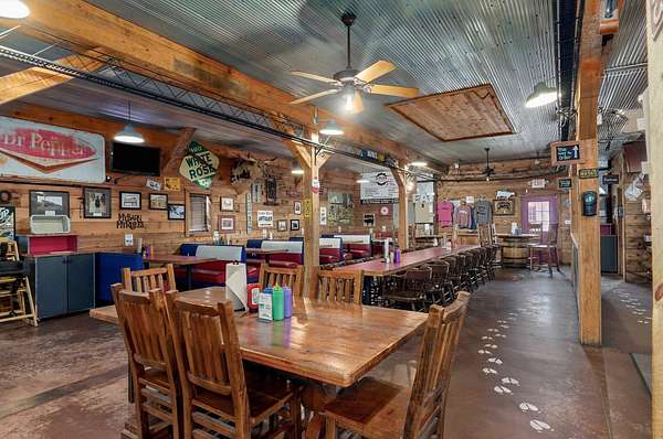 Est $11,343/mo33.55 acres of prime Highway 13 frontage with over 22,000 vehicles per day, with 5,776 sf retail building currently used for restaurant/bar, 20x30 outdoor stage w/elec, and 3,415 sf home, 30x40 barn, 12x30 shed w/elec, and 12x16 shed w/elec. Located just outside city limits on east outer road near offramp with roads on two sides, the possibilities are endless. Restaurant furniture and fixtures, including food truck, may be purchased at an additional cost for turnkey business.
