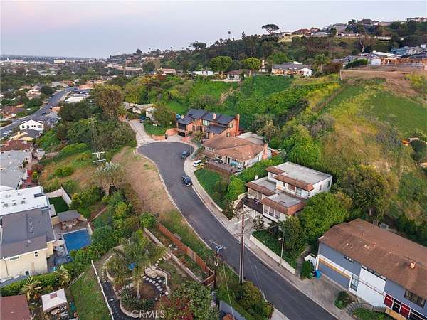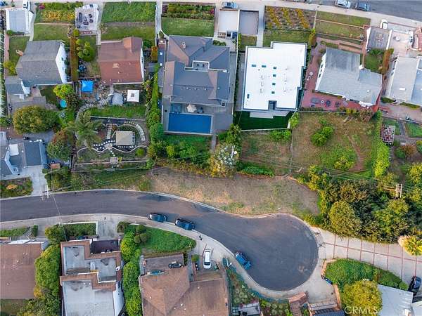 The property features approximately 4,006 Sq Ft of land with an irregular shape and downhill topography, providing unique design potential for a custom home. Positioned along a curved street with usable frontage, the lot allows for creative architectural possibilities.