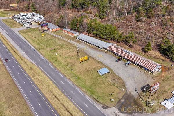 Est $7,115/mo18+/- Acres commercial and residential land with 600' road frontage along busy US 74 W in Whittier NC. This property has historically been used at "Aunt Fannie's Flea Market and Storage. The retail center includes 13 rentals from 100 sq ft to 1,800 sq ft. There are 32 Self-Storage units. The owner has hired a professional property manager to get a handle on the rentals and increase cash-flow. Potential to convert to a much larger storage facility to re-development of the parcel. There is nice flat residential land at the top each parcel that is undeveloped and beside a current housing development. Many possibilities. Bring us your idea and your offer!