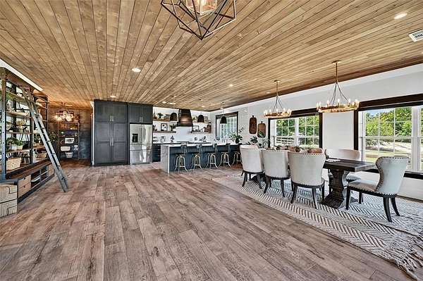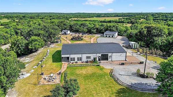 One-of-a-kind sanctuary, sprawling over 31 acres of picturesque landscape, this captivating estate is designed to impress. The main house boasts an expansive 4,800 square feet of open floor plan, where high-end finishes meet clever design. With three spacious bedrooms, including a master retreat accompanied by a serene screened-in porch, every corner of this home invites relaxation amidst stunning natural surroundings. The highlight of this property is the 2,400-square-foot barn, seamlessly integrated with the main house, offering limitless possibilities--be it as a workshop, creative studio, or a whimsical man cave. Additional outbuildings provide versatile functionality, catering to your every need. As night falls, the property transforms under strategically placed outdoor lighting, enhancing both safety and ambiance. With ample parking space, hosting guests is a breeze. Nature lovers will adore the large pond and lush, tree-lined grounds offering privacy and a serene, wooded atmosphere--perfect for meditation or a leisurely read. Thoughtfully fenced and equipped with dual sprinkler systems, maintaining this sprawling estate is both convenient and efficient. Whether you're dreaming of a private retreat, an event venue, or a creative haven, this property is a rare gem that combines modern conveniences with expansive space and versatility. Embrace the endless possibilities of this dream estate!