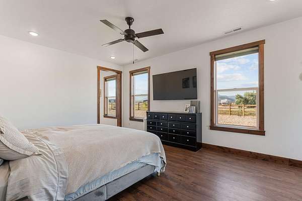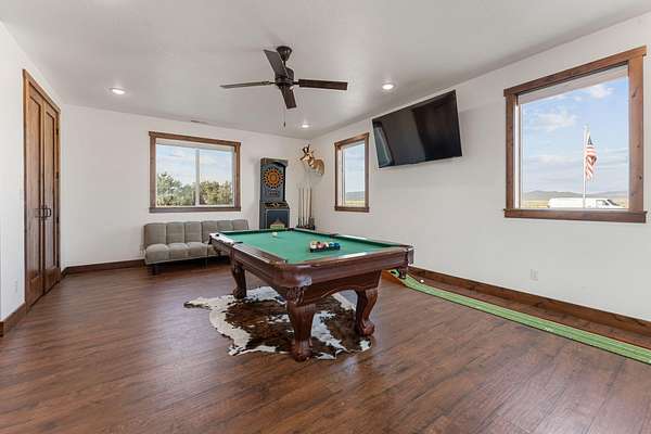 Welcome to your rustic country getaway! 2.5 acres of peace and quiet you can feel. With this home only being 2 years old, you can rest assured knowing you can focus of building your own ranch and not worry about deferred maintenance. This open concept makes your dream home a place of gathering. Game room is designed for 2 bedrooms if you need it. Monthly payments of $40 for water gives you no limitations. Bring your animals, build your garden, and hook up your RV to power and water onsite. This 2,414 sq ft single family home on 2.5 acres is EXTREMELY hard to find. The mountain views and sunsets are something out of a book. Act now before this property is gone. Hot tub pad poured. Water spigots all throughout. Brand new fence and automatic gate. Security system and new landscaping.