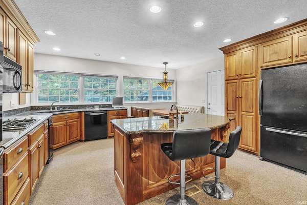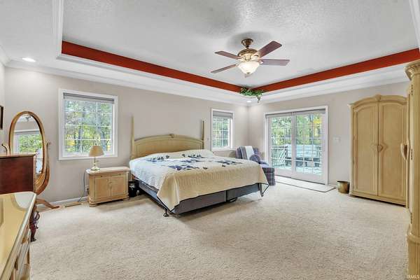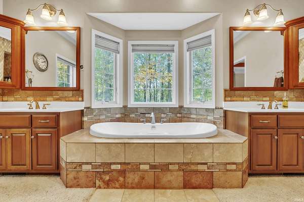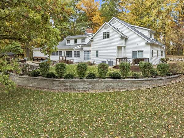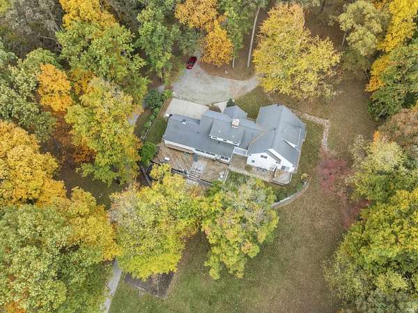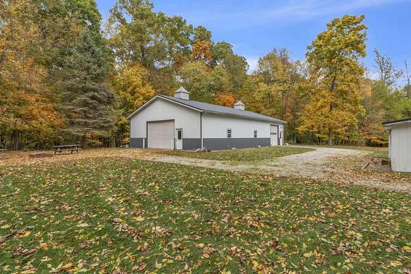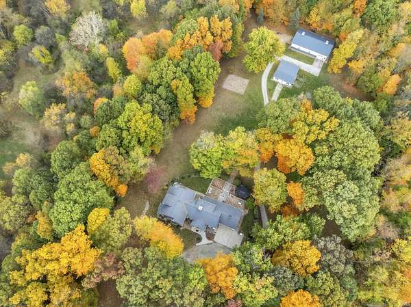 Have you dreamed of living in the country? Look no further! Nestled on a sprawling 9.89 wooded lot, this custom-built home offers privacy and tranquility. A long scenic driveway winds thru the trees, that creates a grand approach to the home. The charming front porch says Welcome to my home and is ready to decorate for every season. As you step into the inviting entryway you will notice the natural slate floor thru out the entry. The kitchen is a bakers dream with plenty of room for all the upcoming holiday baking. Custom cabinets by Dale Orr with quartz counter tops, a breakfast bar with seating, built in desk and all appliances to stay. The spacious primary suite is a WOW and a private retreat, featuring patio doors that open directly onto a serene deck- perfect for morning coffee or unwinding at sunset. The spa-inspired, primary bathroom offers a garden tub for soaking, a beautifully tiled shower with built-in seating and dual vanities. Get ready to go shopping to fill your dream come true walk-in closet with many built ins. The laundry room is off of the walk-in closet with a pull-down ironing board, laundry sink, storage and the washer and dryer to stay. Upstairs offers 4 bedrooms and a full bath. 2 of the bedrooms have their own private bathrooms with stand-up showers and both have 2 walk in closets. Gather with family and friends in the inviting living room, where a gas log fireplace adds warmth and charm to the generous open spaces. Need extra room there is also a family room perfect for a game room or hang out for the kids. 2 half baths on the main level, beautiful crown molding thru out the home, bay window in the family room plus many more amenities. Rec Room in basement is ready for some finishing touches and also features a fireplace. As you step out the back door, you'll be greeted by the serene, wooded views, creating a picturesque retreat. The 40x64 insulated pole barn offers exceptional space - from a workshop or storage building to a hobby garage. There is another barn with 4 horse stalls and storage.