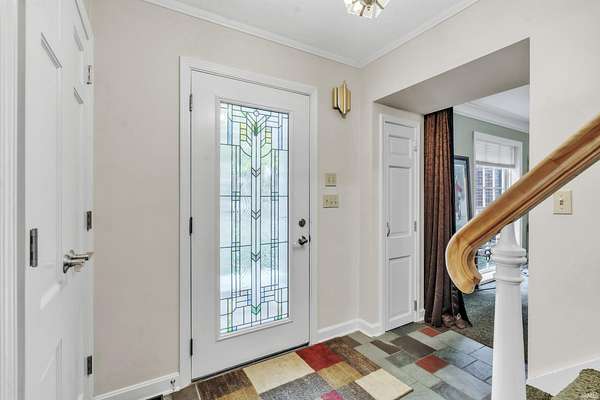 - Breakfast Bar, Built-In Bookcase, Built-In Desk, Ceiling Fan(s), Ceiling-Tray, Closet(s) Walk-In, Countertops-Solid Surf, Crown Molding, Custom Cabinetry, Deck Open, Detector-Smoke, Dishwasher, Disposal, Dryer Hook Up Electric, Eat-In Kitchen, Foyer Entry, Garage Door Opener, Garden Tub, Ice Maker, Laundry-Chute, Main Level Bedroom Suite, Pocket Doors, Refrigerator, Six Panel Doors, Stand Up Shower, Water Heater Gas