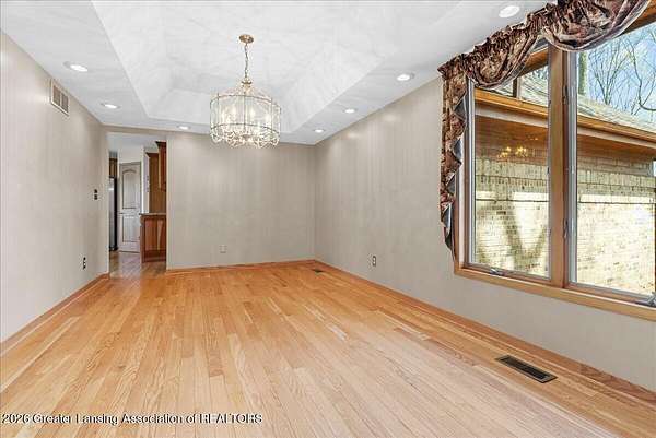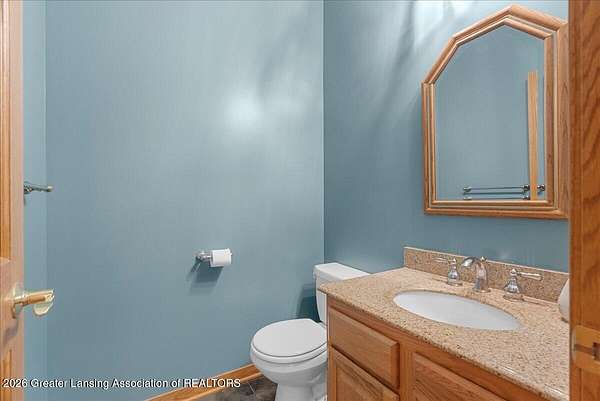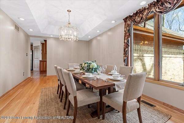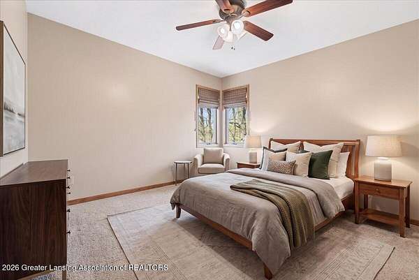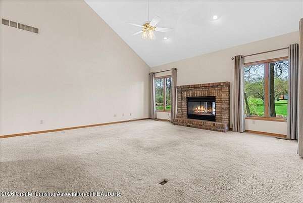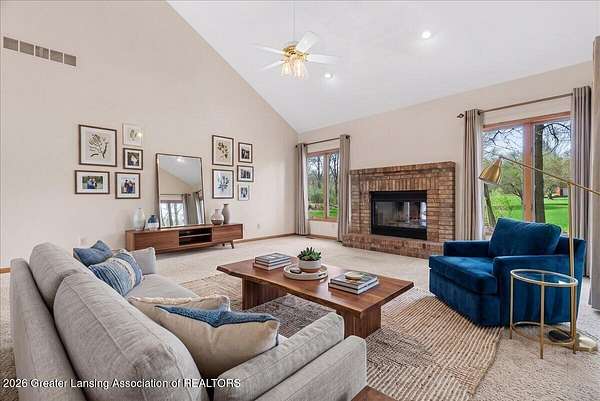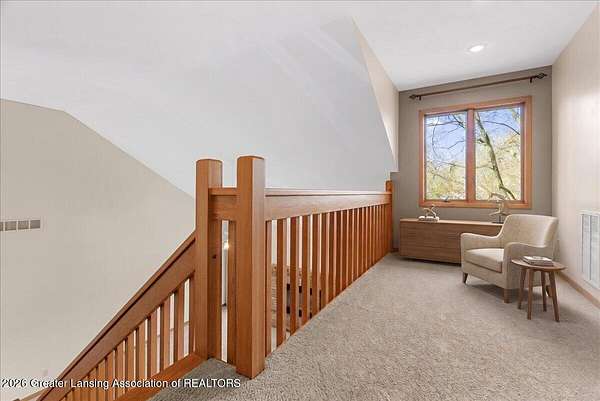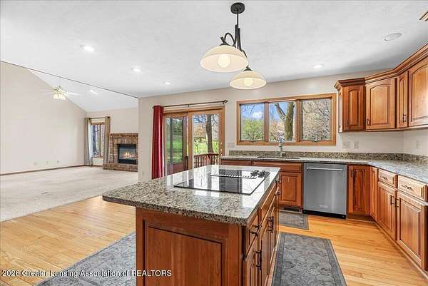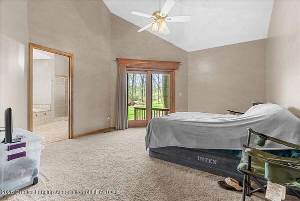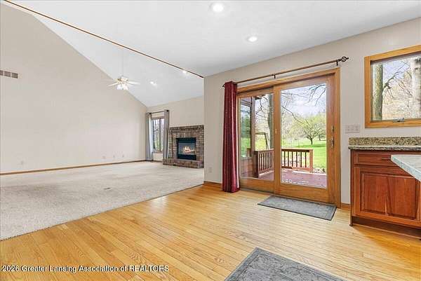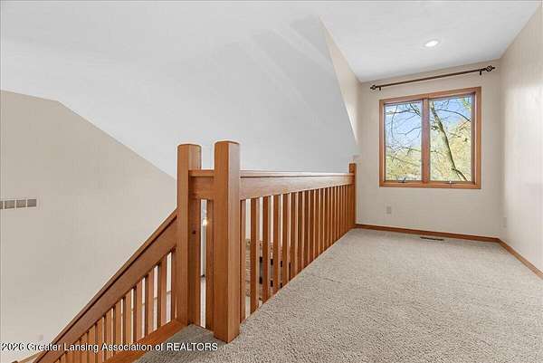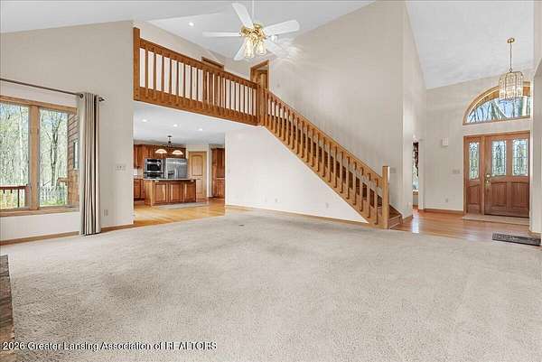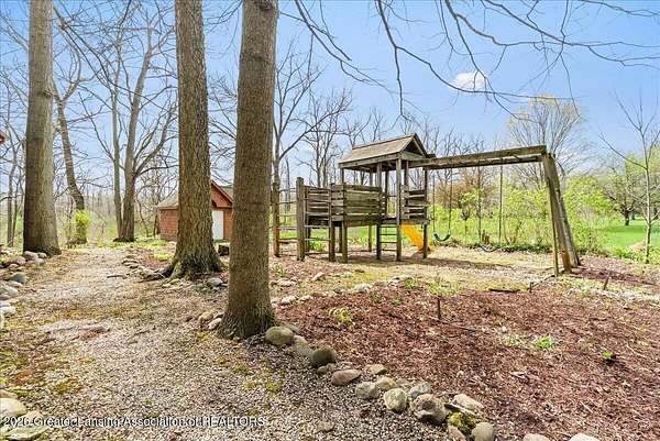 Welcome to 5262 N Canal Rd, this stunning one-owner home offers 5 bedrooms, 3.5 bathrooms, and a private setting surrounded by mature trees. From the moment you enter, you're greeted by a beautiful foyer with tall ceilings and an open, inviting layout. The updated kitchen flows seamlessly into the living area, featuring a wood-burning fireplace and access to a formal dining room, perfect for both everyday living and entertaining. The main-floor primary suite is truly impressive, offering a spacious en suite bath with a separate tub and shower, a large walk-in closet, and private access to its own deck. An additional bedroom on the main level provides flexibility for a guest room or office, along with first-floor laundry and a half bath. Upstairs, you'll find two bedrooms connected by a shared full bathroom, plus a versatile loft space ideal for a playroom or home office. The finished basement adds incredible space with a large family room, wet bar, an additional bedroom with an attached full bath and built-in desk, a utility room with workshop space, and ample storage. Outside, the property shines with a shed, an additional garage matching the home, and a large all-metal pole barn with concrete floors, wired for electricity. Enjoy the peaceful setting with a beautiful koi pond, play area, and a private, tree-lined yard. Additional features include hardwood flooring, cedar shake and brick exterior, generator plug, and a new furnace (2025).