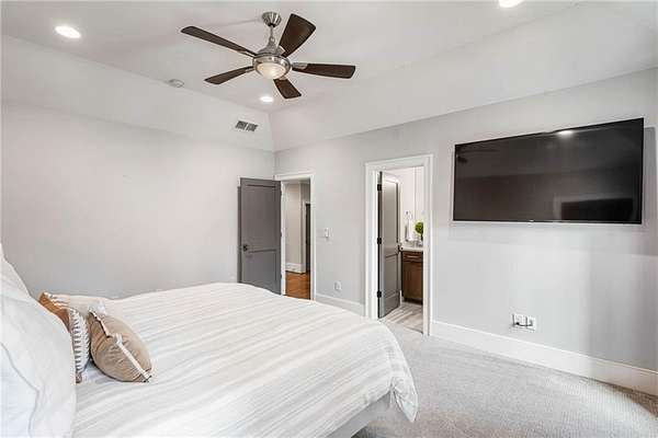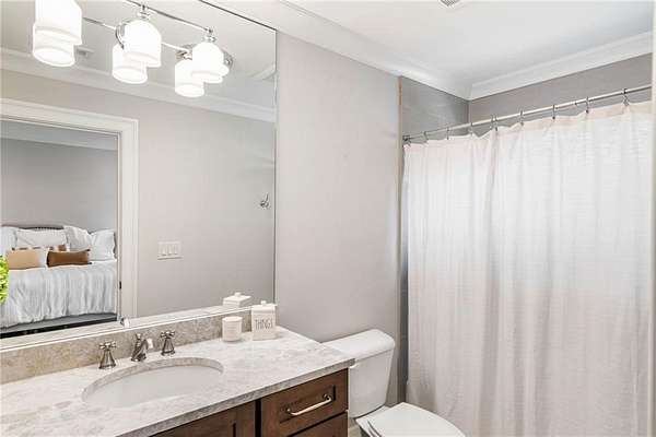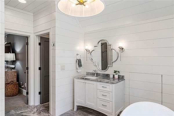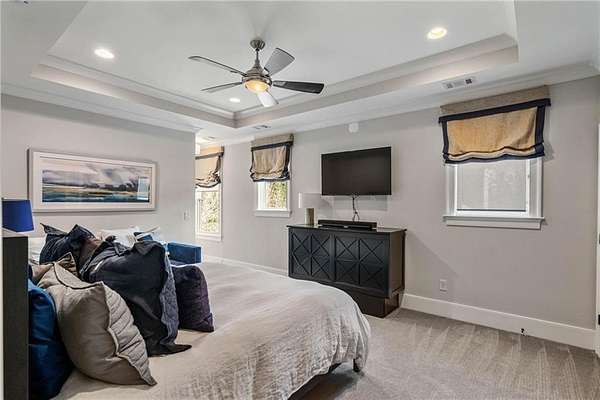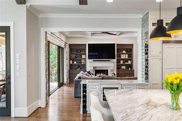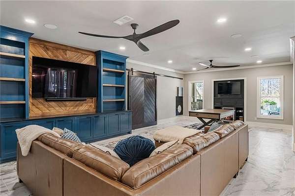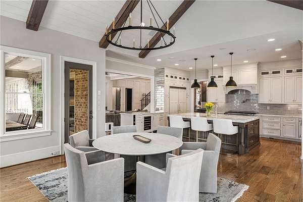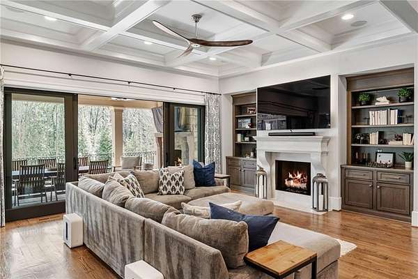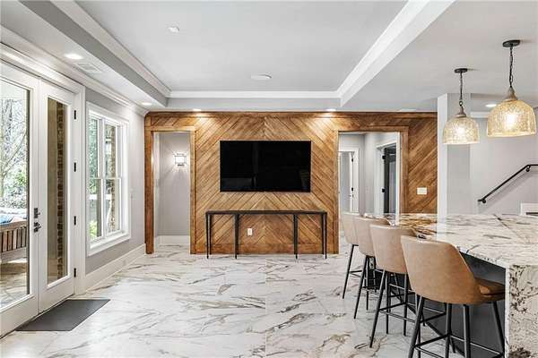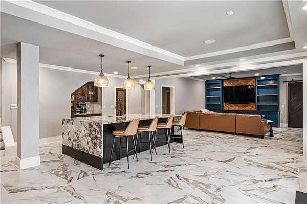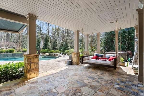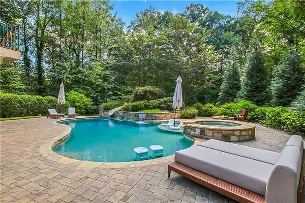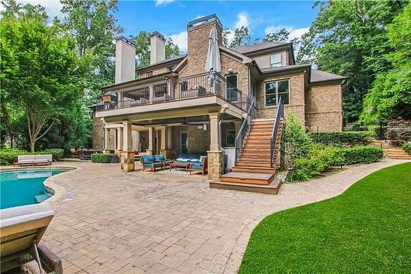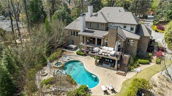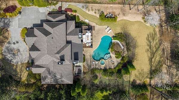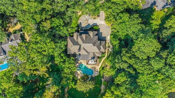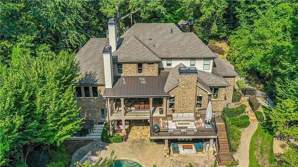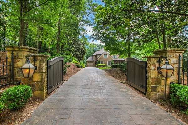 Discover an unparalleled residential experience in this nearly 9 thousand sq ft gated estate, where architectural grandeur meets the serenity of a 1.78-acre private sanctuary. The arrival is defined by a winding cobblestone driveway that leads past gas-lit wooden security gates and custom iron fencing to a magnificent stone circular motor court. The home's exterior character is further enhanced by a deep, covered entry porch supported by rustic wooden beams and illuminated by flickering gas lanterns-a prelude to the one-of-a-kind wrought iron door that serves as the gateway to this exceptional residence. Inside, the light-filled two-story foyer is flanked by a formal dining room and a fireside study, offering a sophisticated environment for both grand-scale hosting and quiet professional focus. The central great room, distinguished by custom built-ins and fine craftsmanship, opens to an expansive covered porch equipped with an outdoor fireplace, creating a year-round living space that overlooks the estate's professionally manicured grounds. The culinary center of the home is a masterpiece of design and utility, featuring an oversized social island with a built-in wine grotto and custom cabinetry accented by under-cabinet lighting. Outfitted for the serious chef, the kitchen boasts professional-grade stainless appliances, including a Subzero double fridge-freezer and a celebrated ILVE Majestic seven-burner gas range with dual ovens and a dedicated pot-filler. A secondary catering kitchen and a massive mudroom-laundry suite located off the third garage bay provide the functional infrastructure required for a home of this scale. Accommodations are equally impressive, led by a main-level owner's suite that serves as a private spa retreat, featuring dual custom walk-in closets and a marble-clad, zero-entry frameless shower. The upper level provides four additional bedroom suites, including three guest retreats with en-suite baths and a second primary suite complete with a soaking tub and separate shower, offering flexibility and privacy for family and guests alike. The terrace level is a dedicated wellness and entertainment floor, designed to provide a comprehensive lifestyle experience without leaving the property. This level includes a fully private guest or au-pair suite, a professional-grade fitness center with specialized flooring, a sauna, a chilled wine cellar, and a spacious living area anchored by a full-service bar. Outside, the property transforms into a private resort, featuring a custom pool with a slide and an integrated hot tub, all surrounded by a natural landscape buffer that ensures absolute seclusion. Modern conveniences, including a brand-new elevator serving all levels and proximity to the city's premier medical corridors (Northside and Emory St. Joseph's), make this estate a rare offering for the discerning resident seeking the privacy of an expansive lot within reach of Atlanta's most vital business and healthcare hubs.